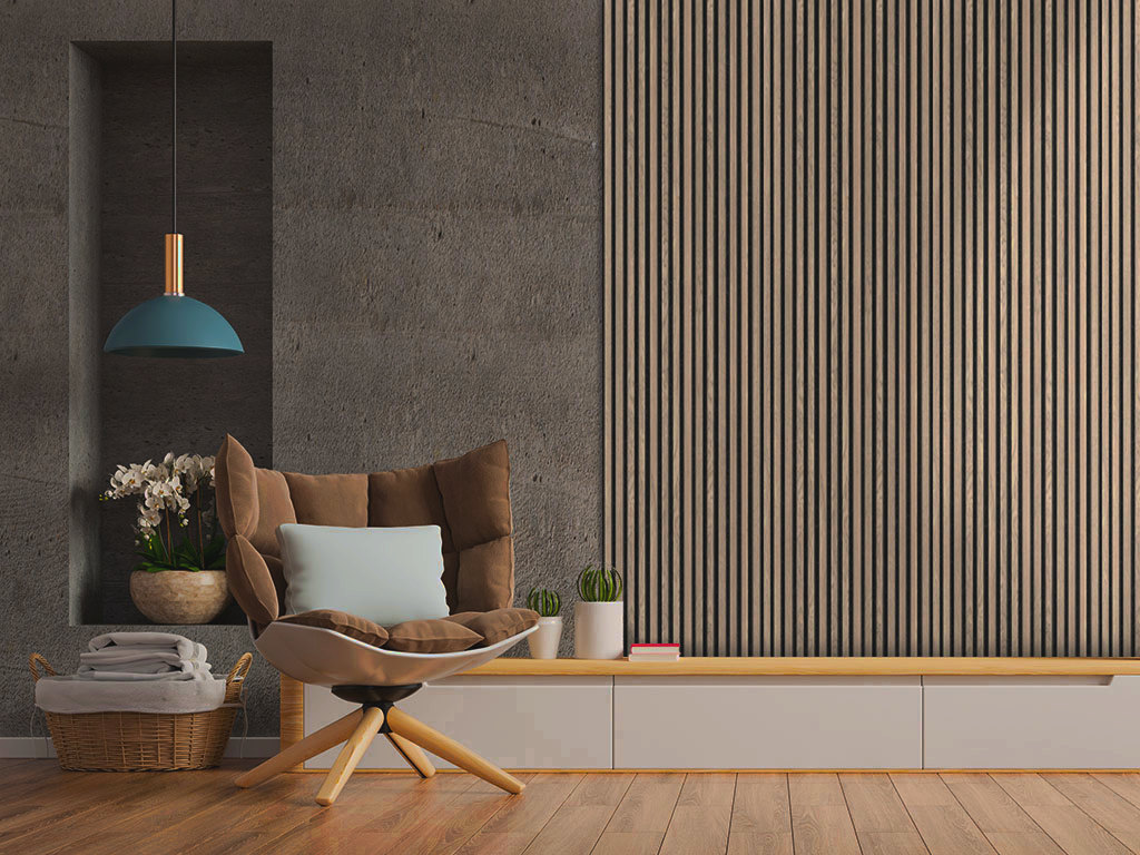 Akustikpaneele Wandverkleidung Grey Oak22 mm stark, 244 x 60 cm, MDF Lamellen mit Eichenfurnier naturbelassen, auf Trägerplatte