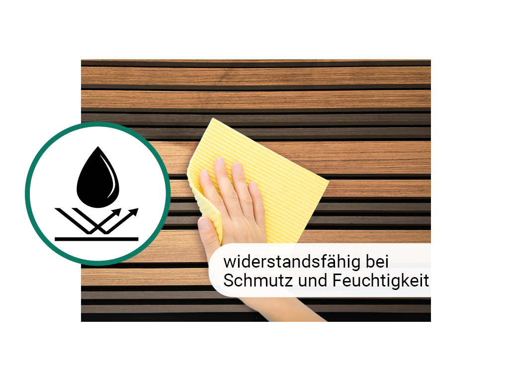 • Mit Furnier aus astfreiem Echtholz belegte Lamellen aus MDF