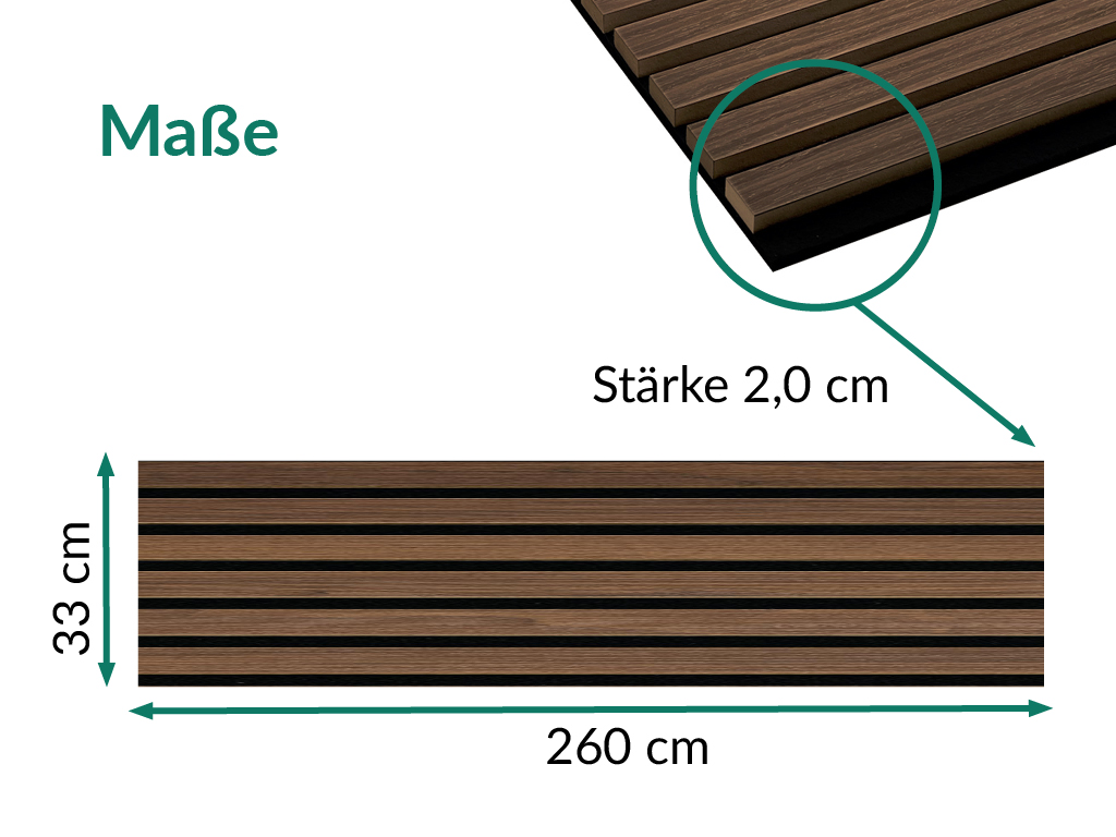 Akustikpaneele Wandverkleidung Verschiedene Dekore22 mm stark, 244 x 60 cm, MDF Lamellen mit Eichenfurnier naturbelassen, auf Trägerplatte