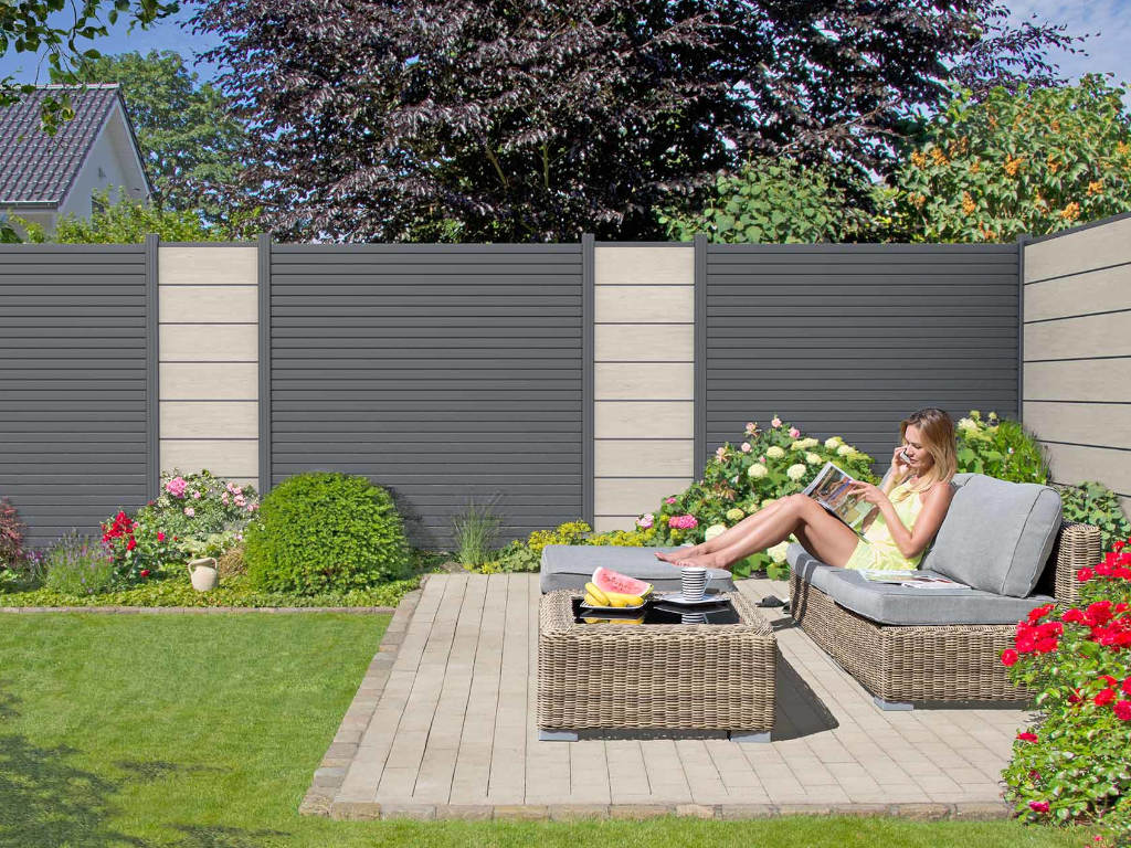 Sichtschutzzaun DESIGN WPC ALU Anthrazit-SilberB x H: 180 x 180 cm