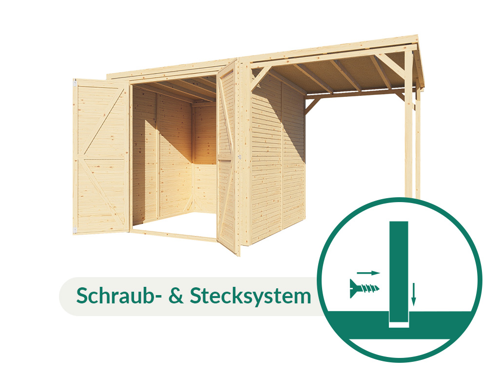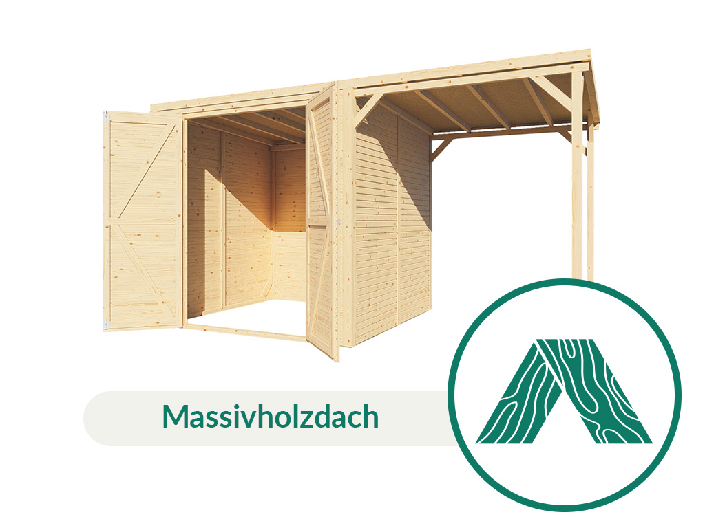 Für mehr Raum und vielfältige Nutzungsmöglichkeiten sorgt dieses Gerätehaus mit Anbaudach.