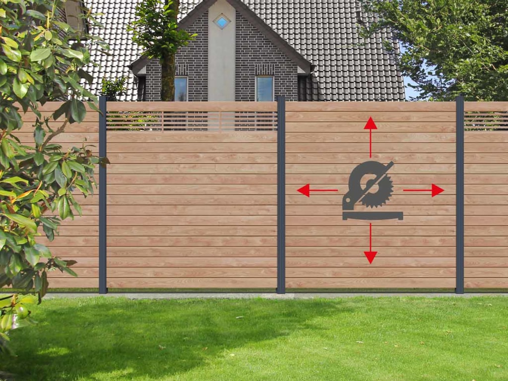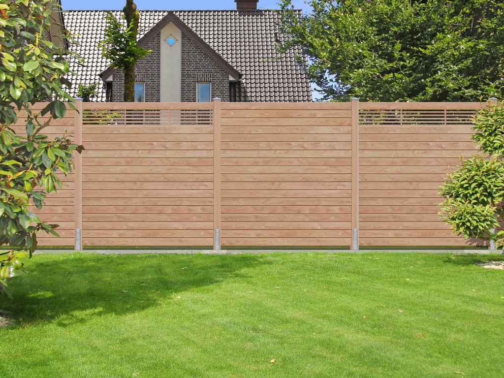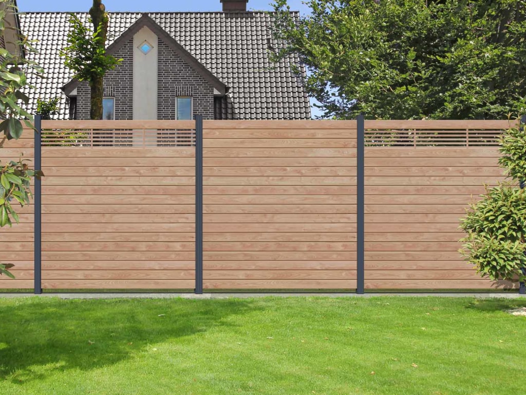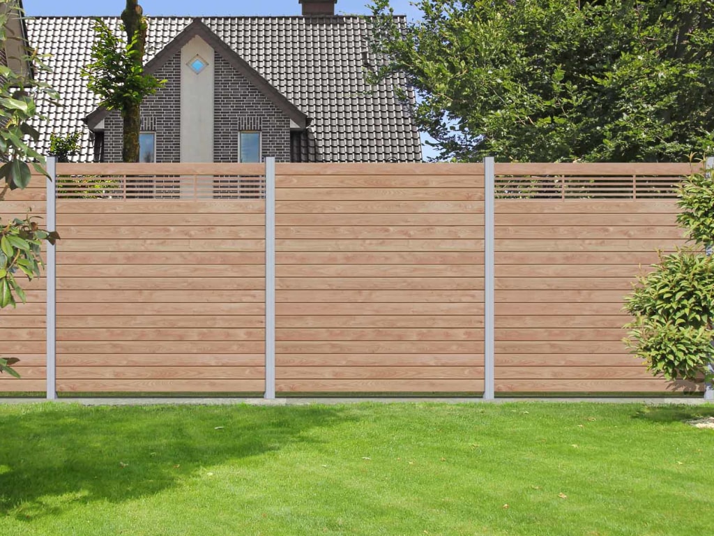 Sichtschutzzaun SYSTEM WPC Zaunfeld-Set...B x H: 178 x 183 cm, inkl. Start- und Abschlussprofil silber