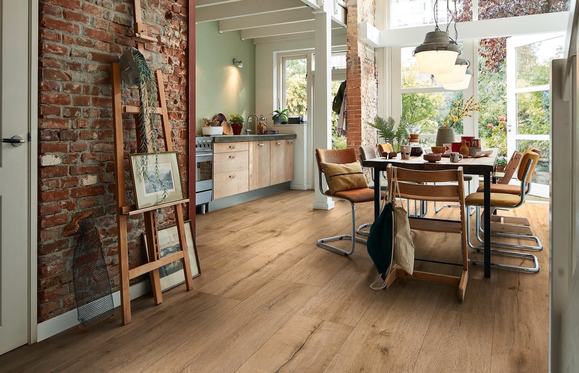 Vinylboden Eiche Natur Basic 30 Landhausdiele9,4 mm stark, 120,7 x 21,6 cm, Safe-Lock, BK 23/31, inkl. Parador Pure Trittschalldämmung