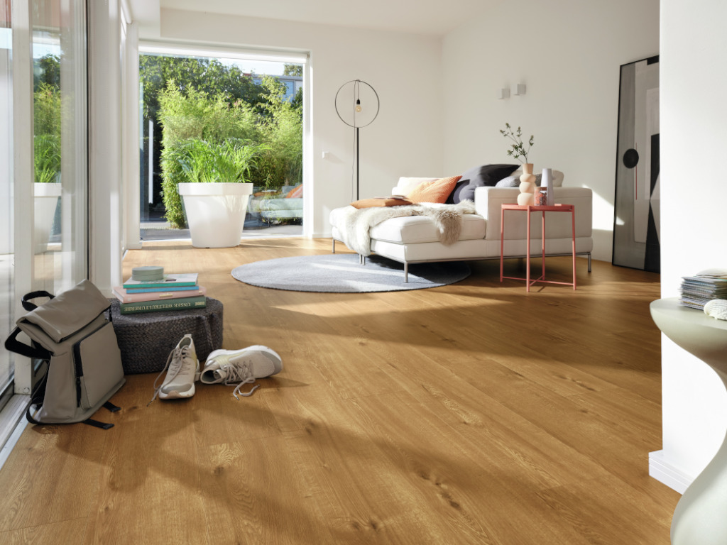 Ein Designboden, der aufgrund des Verzichts auf PVC und Weichmachern als besonders wohngesund bezeichnet werden kann. Darüber hinaus ist er sehr druckstabil und farbtreu bei UV-Strahlung.