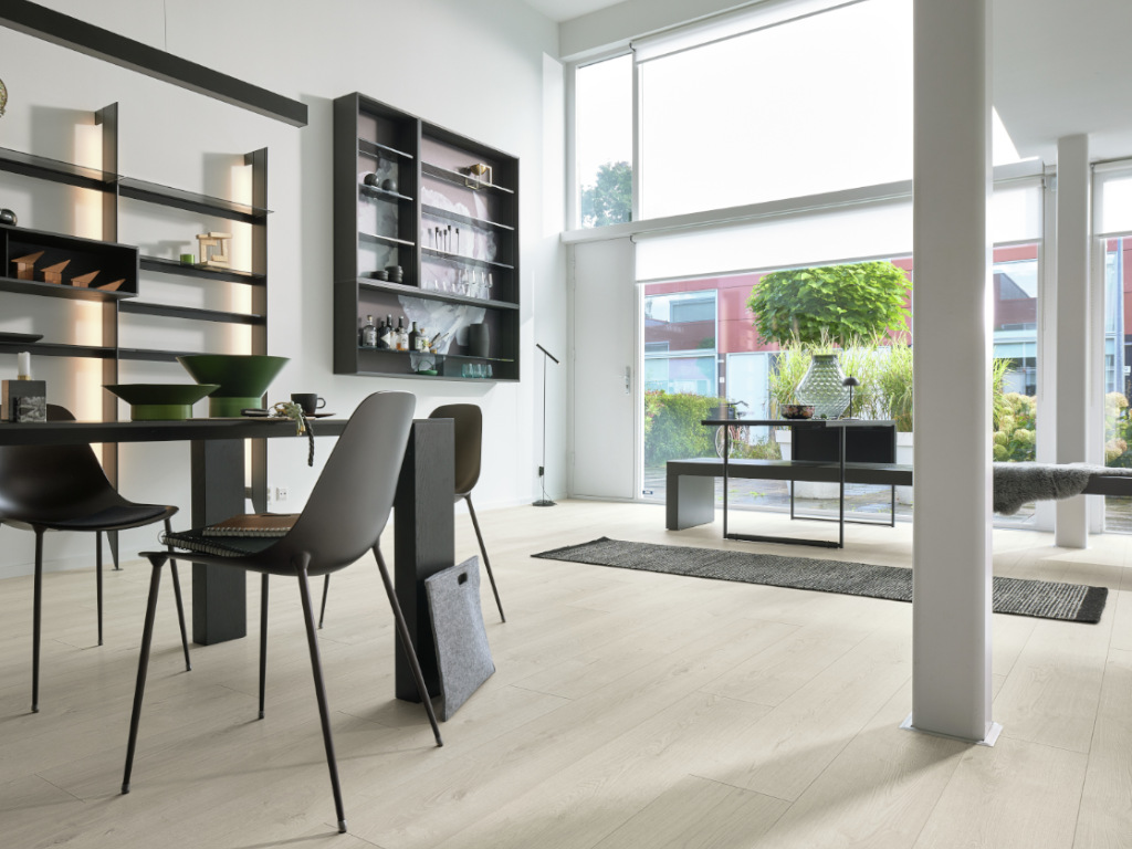 Dieser Designboden ist 5 mm stark. Mithilfe der Klickverbindung Multiclic kann der Boden problemlos schwimmend verlegt werden.