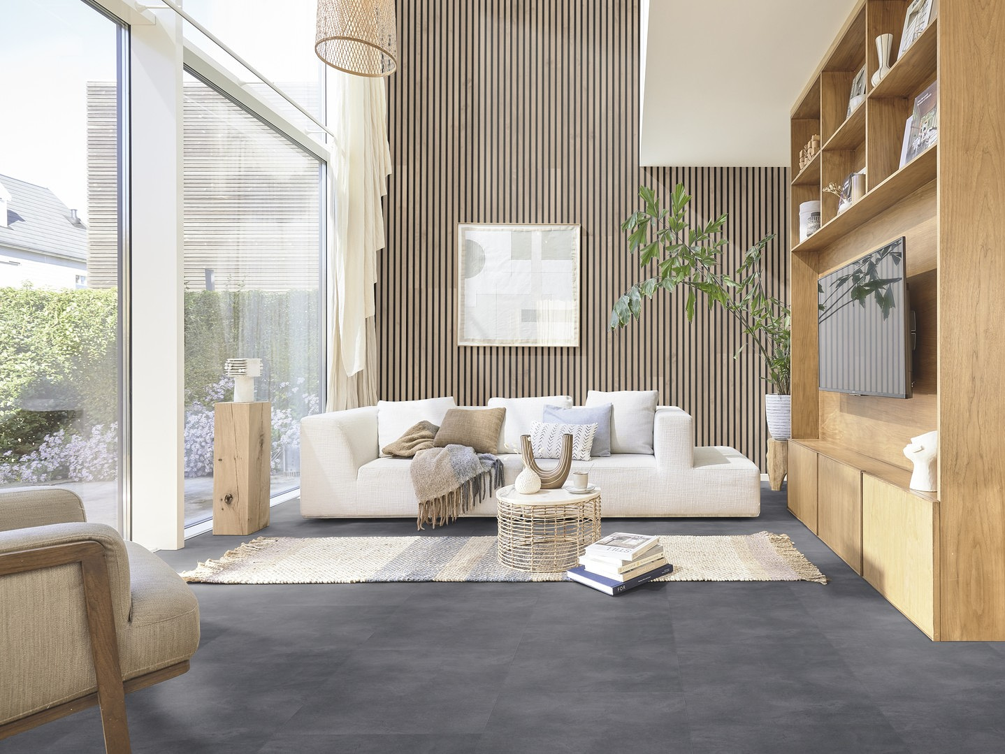 Unsere wohngesunden Designböden kommen ganz ohne PVC und Weichmacher aus. Sie sind besonders druckstabil und ihre Farbe verblasst auch bei Sonneneinstrahlung nicht.