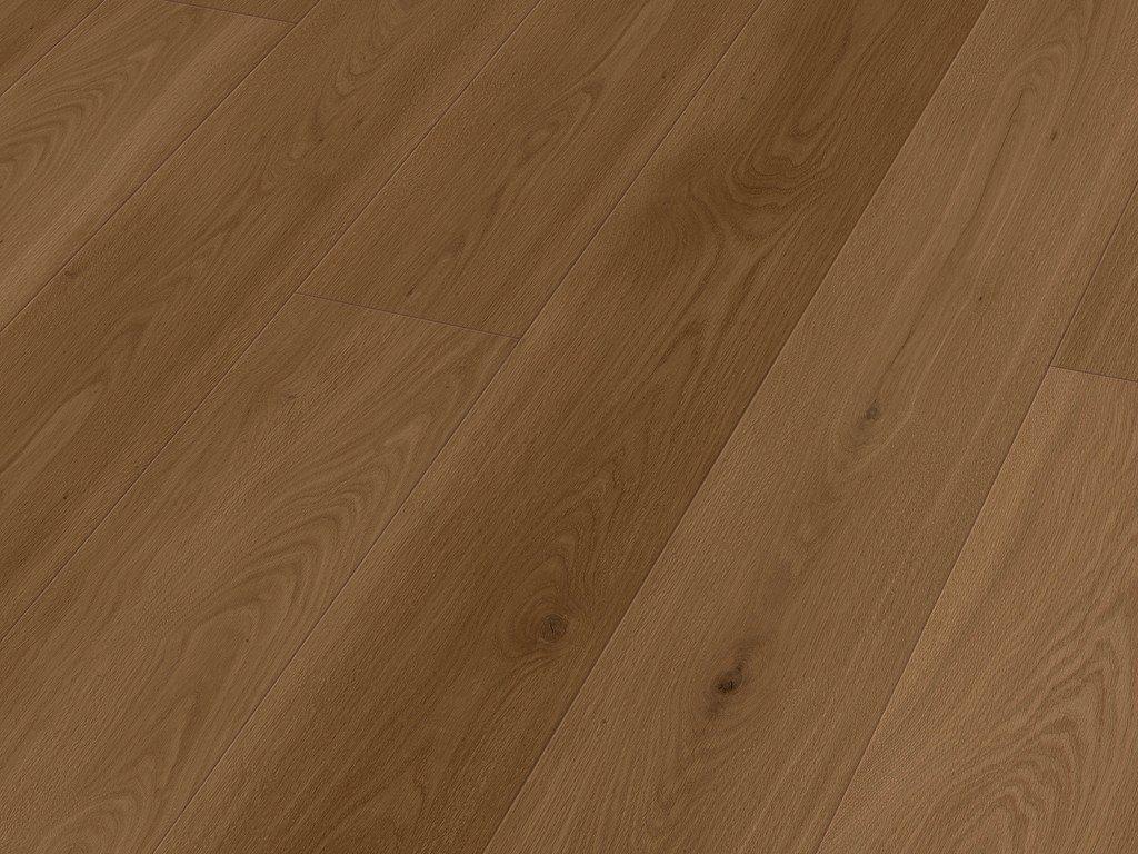 Die markante Eichenholzmaserung des Dekors vermittelt Behaglichkeit und natürliche Lebendigkeit. Landhausdielen wirken mit ihrer 1-Stab-Optik elegant, rustikal und voller Charakter. Die 4-seitig umlaufende V-Fuge der Diele betont den rustikalen Charakter. Dank modernster Herstellungsverfahren werden Musterwiederholungen in der Oberflächenstruktur weitestgehend vermieden, sodass ein natürlich authentischer Holzlook entsteht.