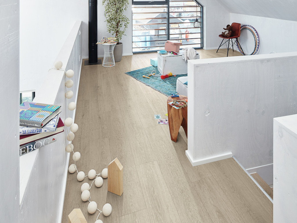 Für stark beanspruchte Räume im privaten Bereich wie Küchen, Treppenflure oder Eingangsbereiche ist dieses Laminat der Nutzungsklasse 23 geeignet. Mit der Nutzungsklasse (NK) 32 des gewerblichen Bereichs eignet er sich bestens für Wartezimmer, Büros oder Boutiquen mit kontinuierlicher Nutzung.