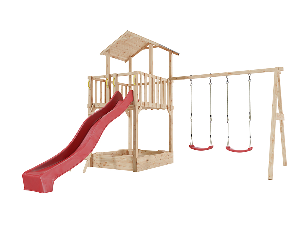 Kundenbewertungen für "Spielturm Tilly Premium mit Doppelschaukel Lärche inkl. Rutsche rot + Sitze rot"