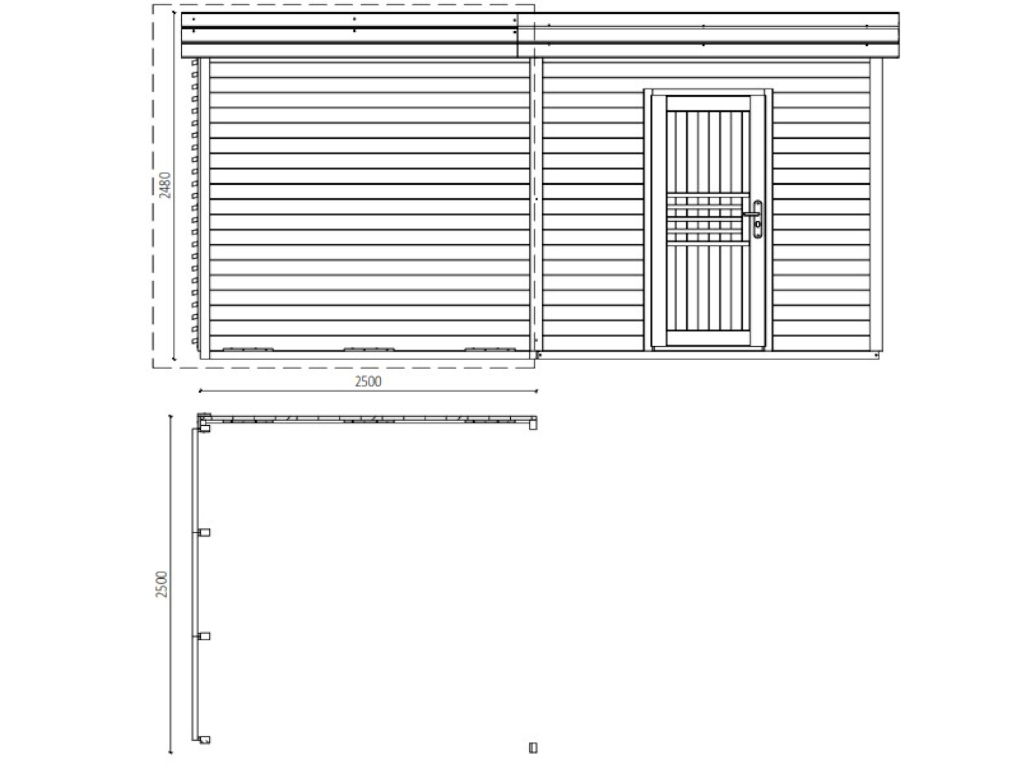 Die Dachausführung erfolgt mit Dachbrettern in Flachdachform. Für die Eindeckung werden 2 Rollen Dachbahn benötigt – Schindeln sind nicht empfehlenswert. Die maximale Schneelast liegt bei 75 kg/m². Die Gesamtmaße des Anbaudachs betragen 264 x 270 x 246,5 cm (B x T x H). Ideal für eine stabile, natürliche Erweiterung von Gartenhäusern – einfach zu montieren, robust und flexibel in der Gestaltung.