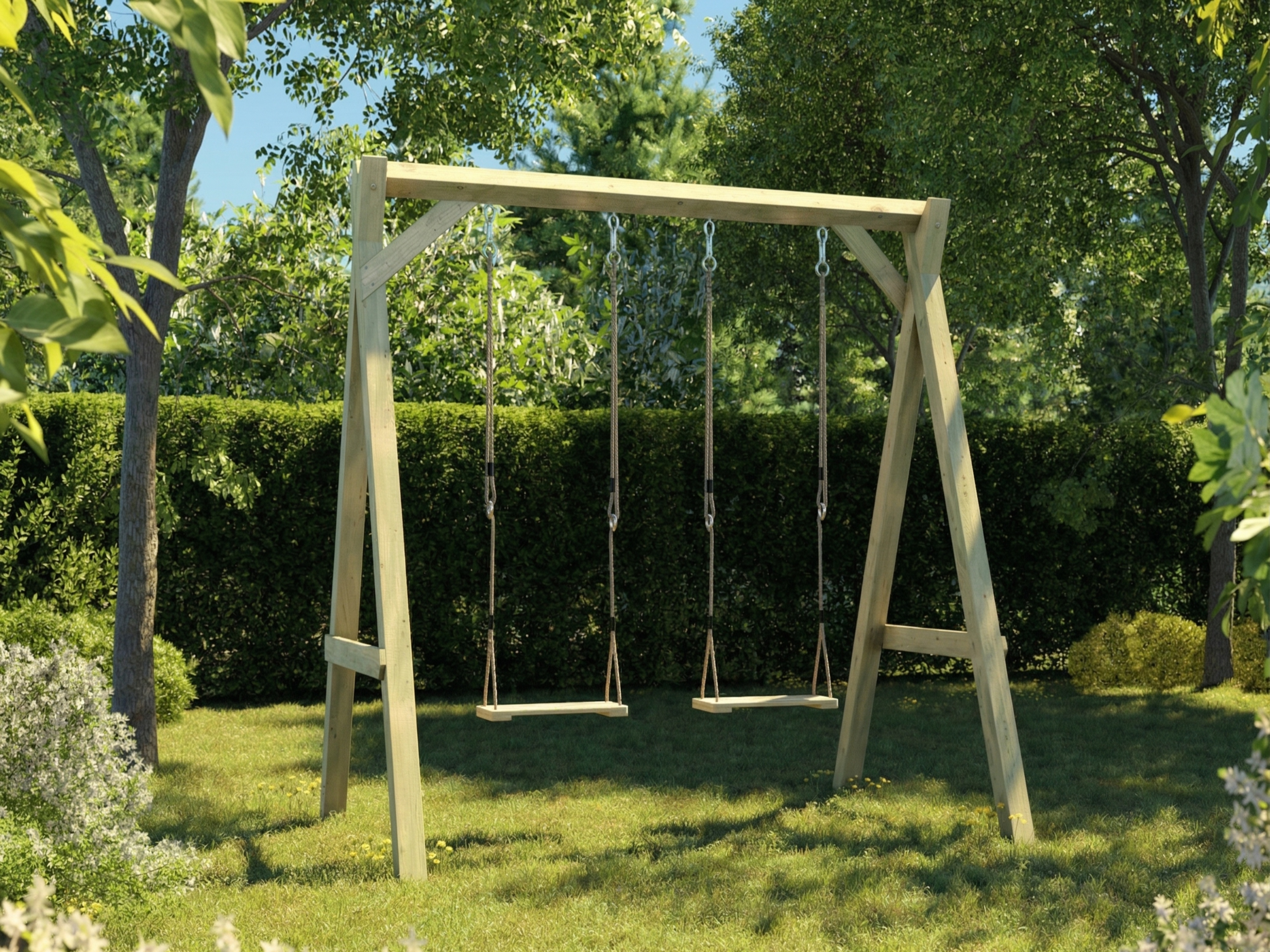 Die Schaukelsitze aus imprägniertem Kiefernholz sind ein allzeit klassischer hölzerner Schaukelsitz mit einem großen Sitzbereich, der als Teil eines natürlicher aussehenden Spielgerätesortiments ideal ist. - Individuelle Gestaltung