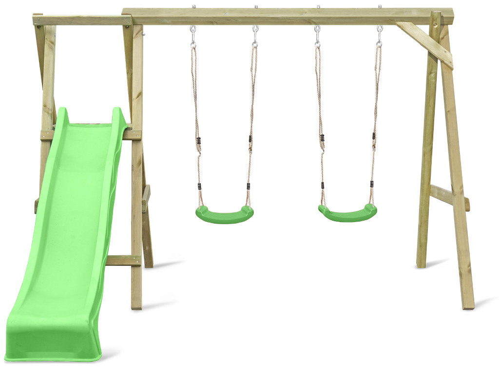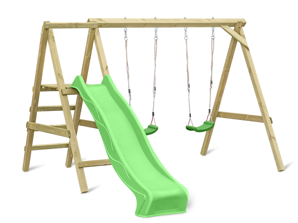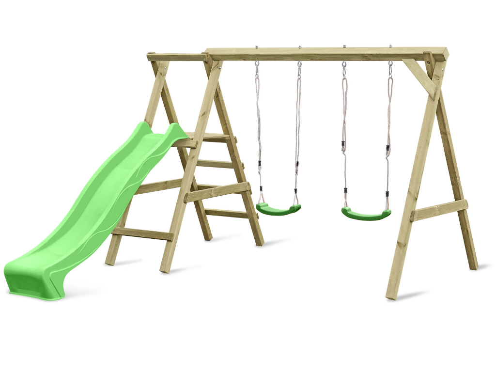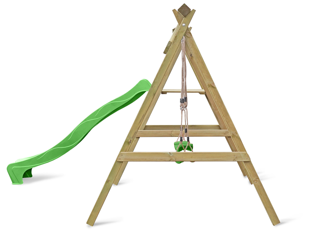 Bei einer Schaukel ist Spaß vorprogrammiert – sie sollte in keiner Kindheit fehlen. Schaukeln ist einfach aufregend und nicht umsonst bei Kindern bis ins Jugendalter und auch bei manchen Erwachsenen noch sehr beliebt. Und da zu zweit spielen noch schöner ist als alleine, hat dieses Modell gleich zwei Schaukelsitze. Die allgemeine Altersempfehlung für Schaukeln liegt bei 3–12 Jahren, für das Gefühl von Leichtigkeit und Freiheit gibt es nach oben hin aber keine Altersbegrenzung. Wer sich nicht entscheiden möchte, ob er lieber schaukeln oder rutschen möchte, trifft mit diesem Modell die richtige Wahl, hier ist beides dabei – für maximalen Spielspaß. Die Podesthöhe liegt bei 120 cm.