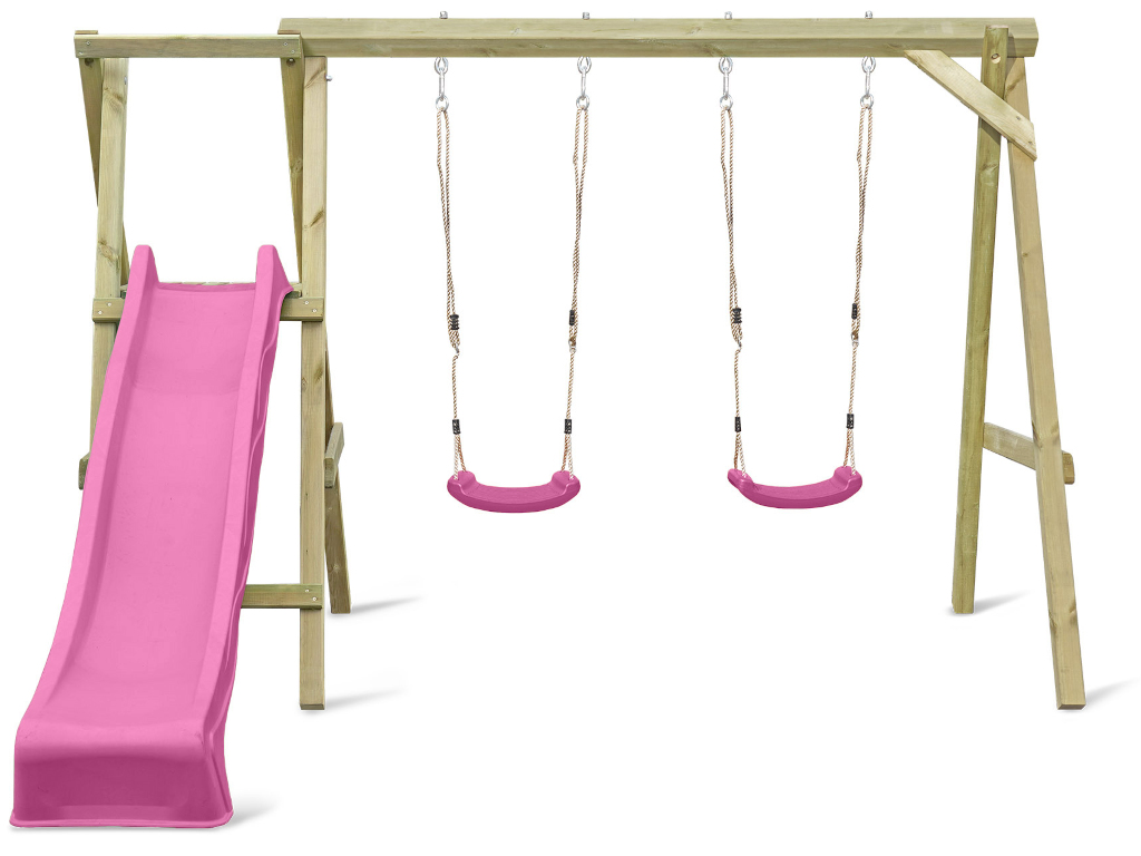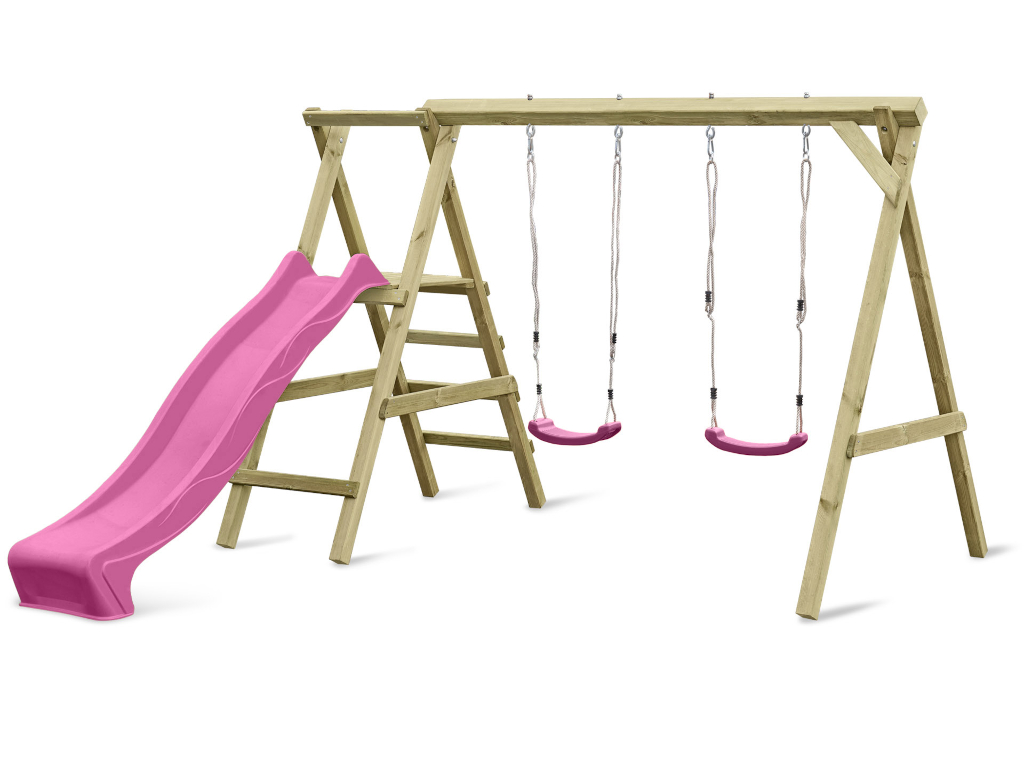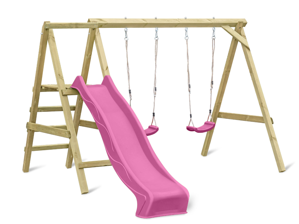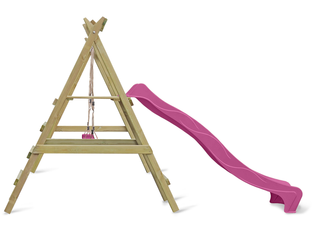 Bei einer Schaukel ist Spaß vorprogrammiert – sie sollte in keiner Kindheit fehlen. Schaukeln ist einfach aufregend und nicht umsonst bei Kindern bis ins Jugendalter und auch bei manchen Erwachsenen noch sehr beliebt. Und da zu zweit spielen noch schöner ist als alleine, hat dieses Modell gleich zwei Schaukelsitze. Die allgemeine Altersempfehlung für Schaukeln liegt bei 3–12 Jahren, für das Gefühl von Leichtigkeit und Freiheit gibt es nach oben hin aber keine Altersbegrenzung. Wer sich nicht entscheiden möchte, ob er lieber schaukeln oder rutschen möchte, trifft mit diesem Modell die richtige Wahl, hier ist beides dabei – für maximalen Spielspaß. Die Podesthöhe liegt bei 120 cm.