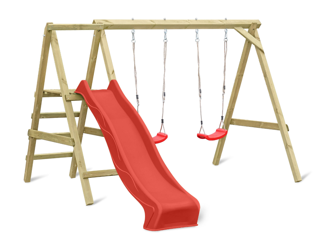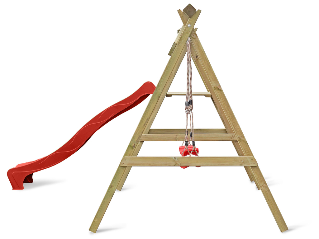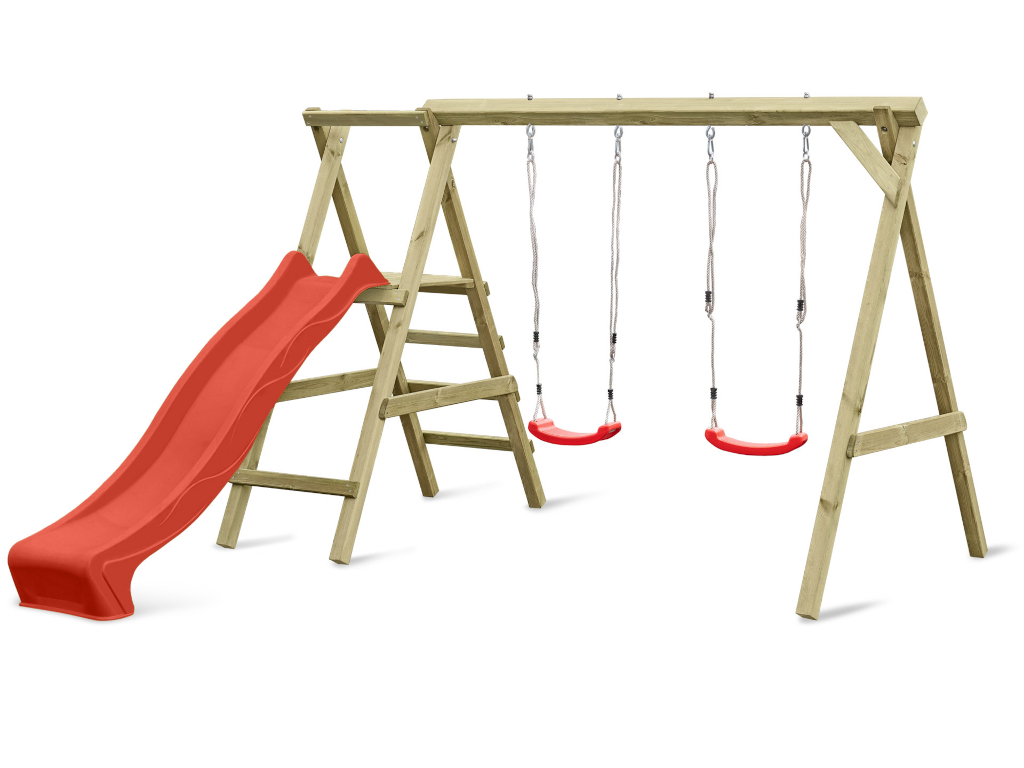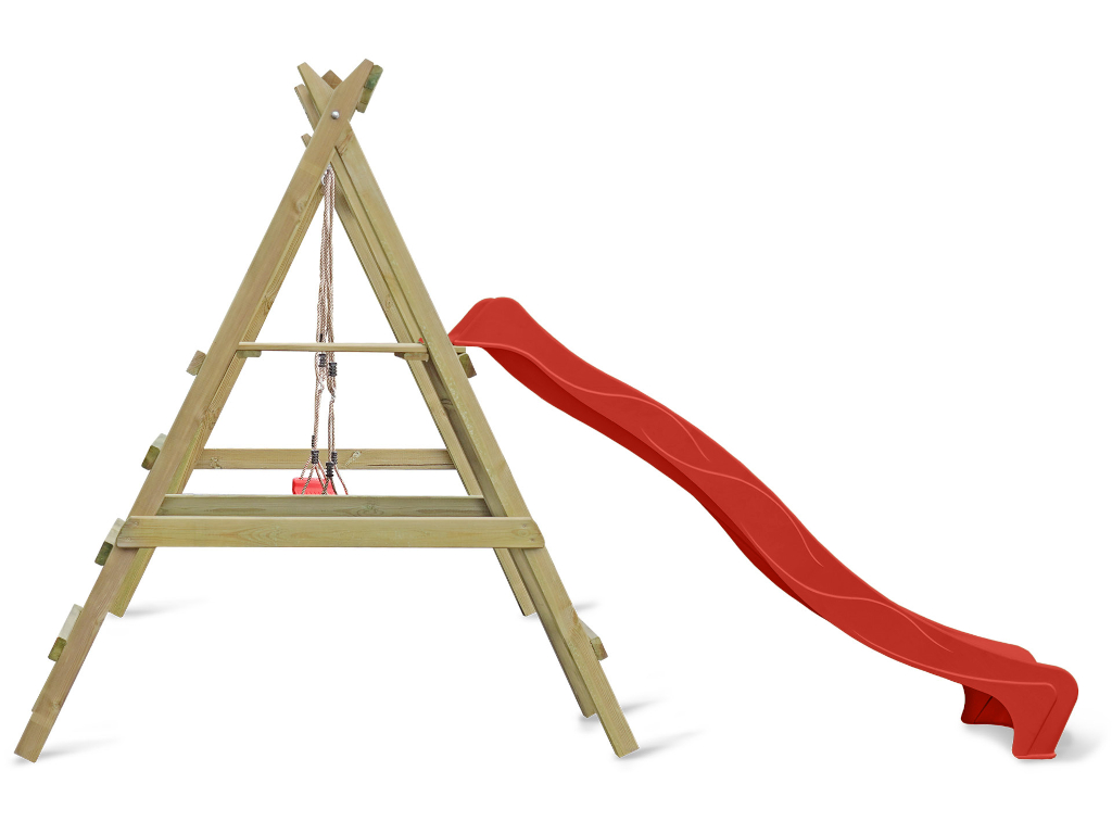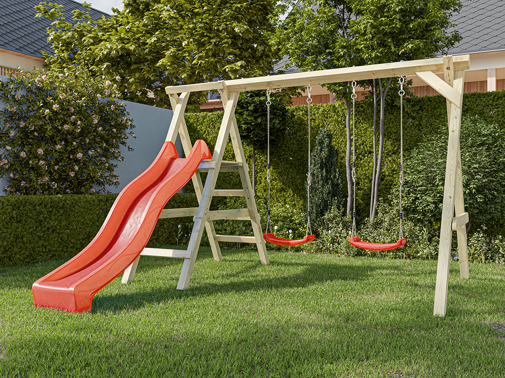 Bei einer Schaukel ist Spaß vorprogrammiert – sie sollte in keiner Kindheit fehlen. Schaukeln ist einfach aufregend und nicht umsonst bei Kindern bis ins Jugendalter und auch bei manchen Erwachsenen noch sehr beliebt. Und da zu zweit spielen noch schöner ist als alleine, hat dieses Modell gleich zwei Schaukelsitze. Die allgemeine Altersempfehlung für Schaukeln liegt bei 3–12 Jahren, für das Gefühl von Leichtigkeit und Freiheit gibt es nach oben hin aber keine Altersbegrenzung. Wer sich nicht entscheiden möchte, ob er lieber schaukeln oder rutschen möchte, trifft mit diesem Modell die richtige Wahl, hier ist beides dabei – für maximalen Spielspaß. Die Podesthöhe liegt bei 120 cm.