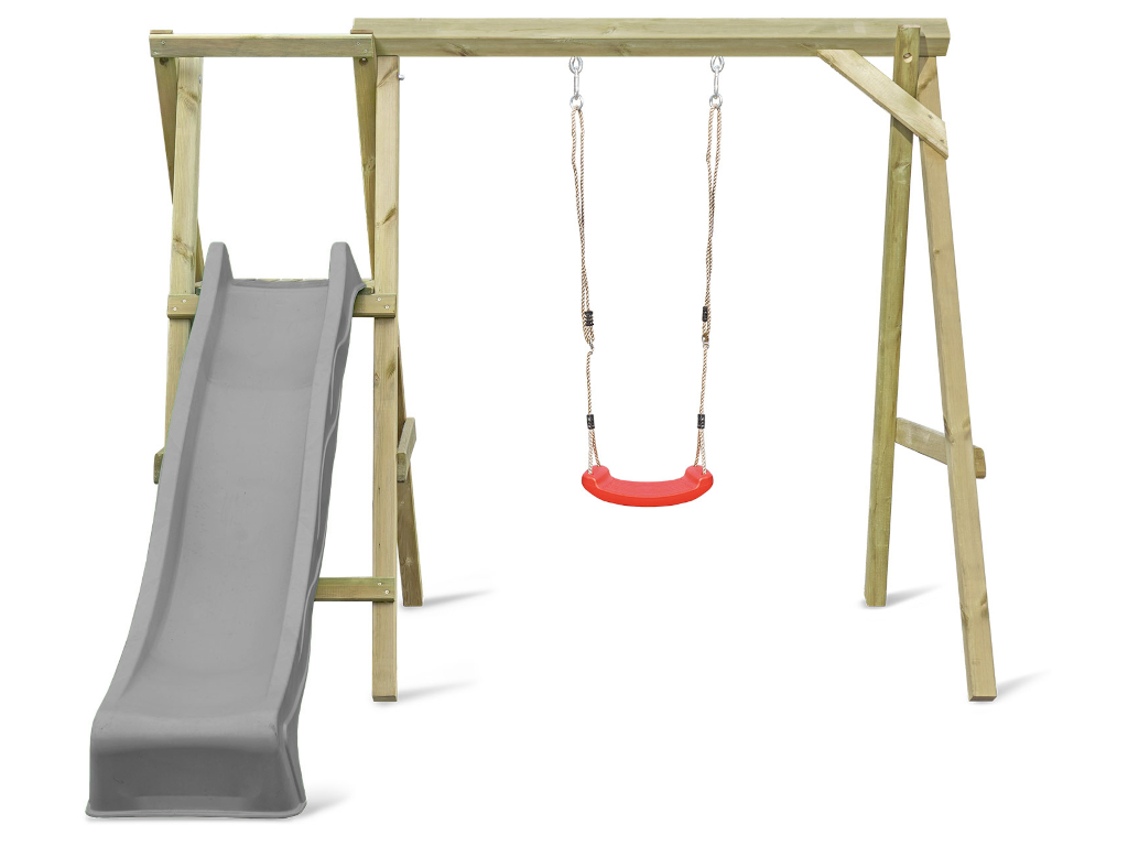 Bei einer Schaukel ist Spaß vorprogrammiert – sie sollte in keiner Kindheit fehlen. Schaukeln ist einfach aufregend und nicht umsonst bei Kindern bis ins Jugendalter und auch bei manchen Erwachsenen noch sehr beliebt. Die allgemeine Altersempfehlung für Schaukeln liegt bei 3–12 Jahren, für das Gefühl von Leichtigkeit und Freiheit gibt es nach oben hin aber keine Altersbegrenzung. Wer sich nicht entscheiden möchte, ob er lieber schaukeln oder rutschen möchte, trifft mit diesem Modell die richtige Wahl – hier ist gleich beides dabei. Die Podesthöhe liegt bei 120 cm.