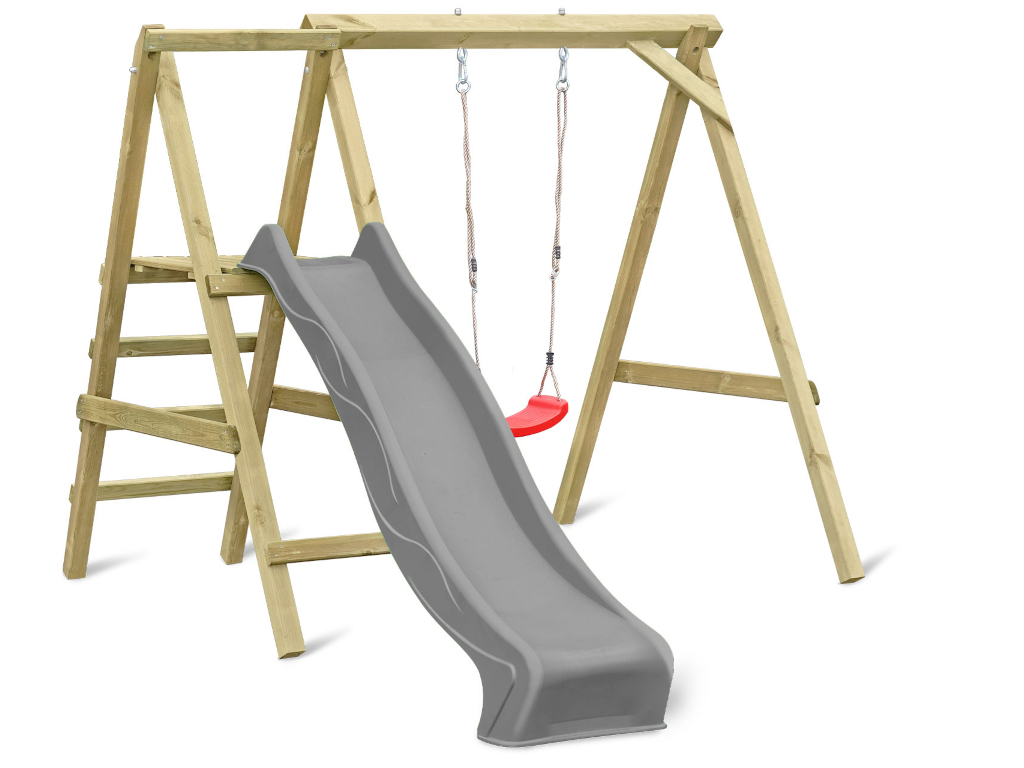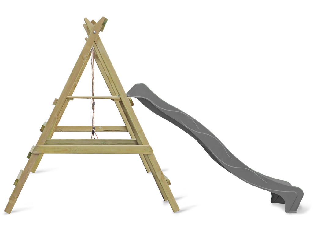 Bei einer Schaukel ist Spaß vorprogrammiert – sie sollte in keiner Kindheit fehlen. Schaukeln ist einfach aufregend und nicht umsonst bei Kindern bis ins Jugendalter und auch bei manchen Erwachsenen noch sehr beliebt. Die allgemeine Altersempfehlung für Schaukeln liegt bei 3–12 Jahren, für das Gefühl von Leichtigkeit und Freiheit gibt es nach oben hin aber keine Altersbegrenzung. Wer sich nicht entscheiden möchte, ob er lieber schaukeln oder rutschen möchte, trifft mit diesem Modell die richtige Wahl – hier ist gleich beides dabei. Die Podesthöhe liegt bei 120 cm.