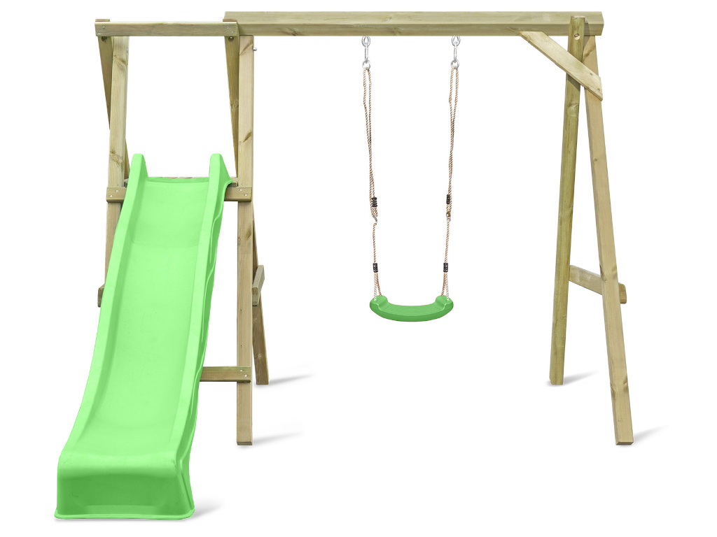 Bei einer Schaukel ist Spaß vorprogrammiert – sie sollte in keiner Kindheit fehlen. Schaukeln ist einfach aufregend und nicht umsonst bei Kindern bis ins Jugendalter und auch bei manchen Erwachsenen noch sehr beliebt. Die allgemeine Altersempfehlung für Schaukeln liegt bei 3–12 Jahren, für das Gefühl von Leichtigkeit und Freiheit gibt es nach oben hin aber keine Altersbegrenzung. Wer sich nicht entscheiden möchte, ob er lieber schaukeln oder rutschen möchte, trifft mit diesem Modell die richtige Wahl – hier ist gleich beides dabei. Die Podesthöhe liegt bei 120 cm.