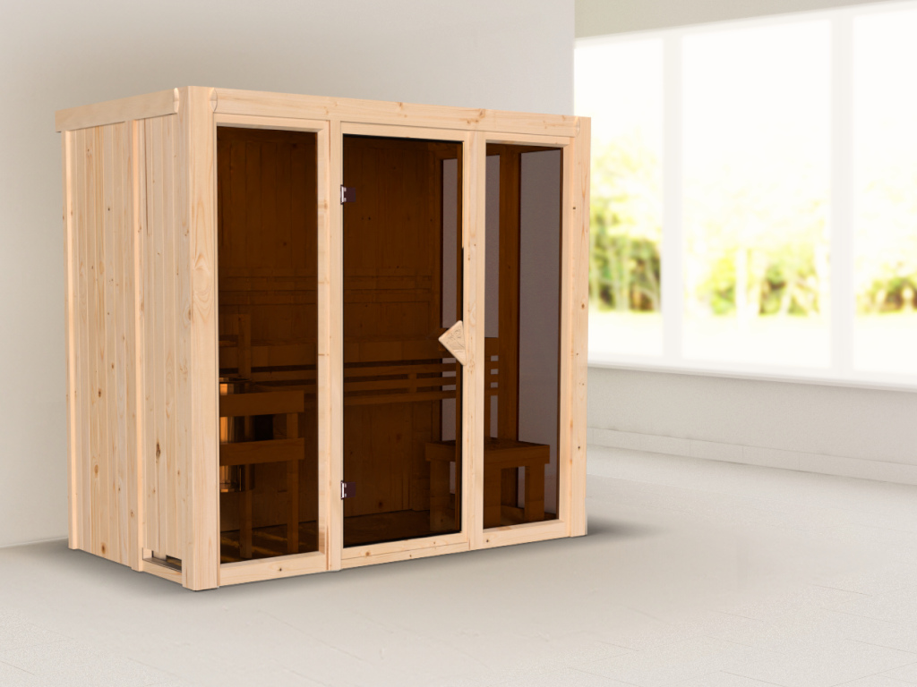 Innensauna Systemsauna Lara 2B x T x H: 175 x 244 x 199 cm, Fronteinstieg, inkl. 2 Liegen