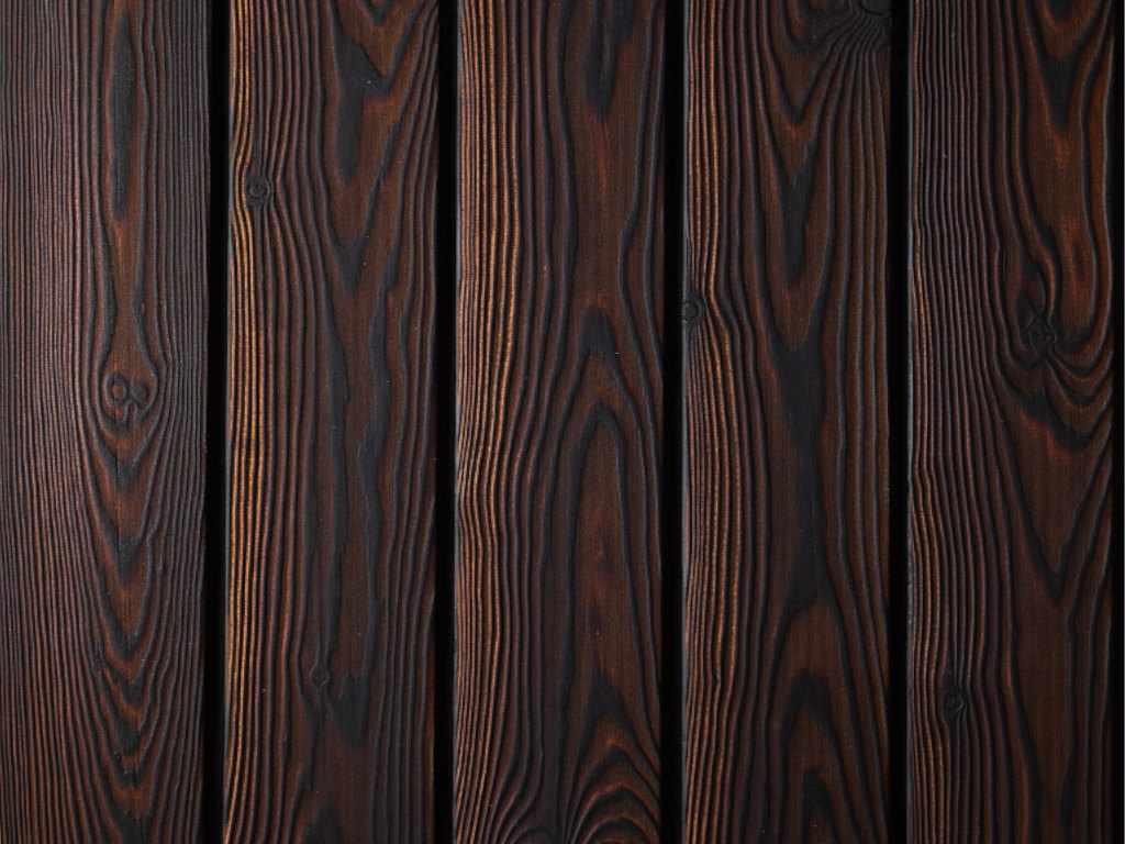 Bitte beachten: Da die Fassadenhölzer mit Feuer behandelt wurden, können sich Rußrückstände auf der Oberfläche befinden, die bei Berührung auf Kleidung und Hände abfärben können.
