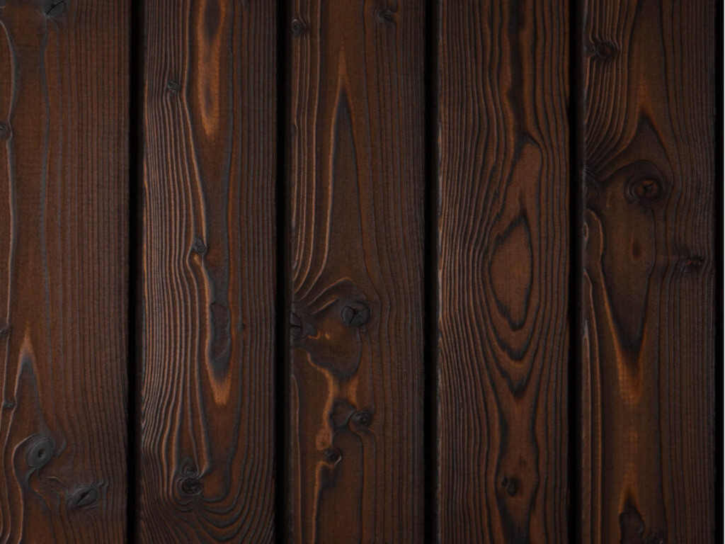 Bitte beachten: Da die Fassadenhölzer mit Feuer behandelt wurden, können sich Rußrückstände auf der Oberfläche befinden, die bei Berührung auf Kleidung und Hände abfärben können.