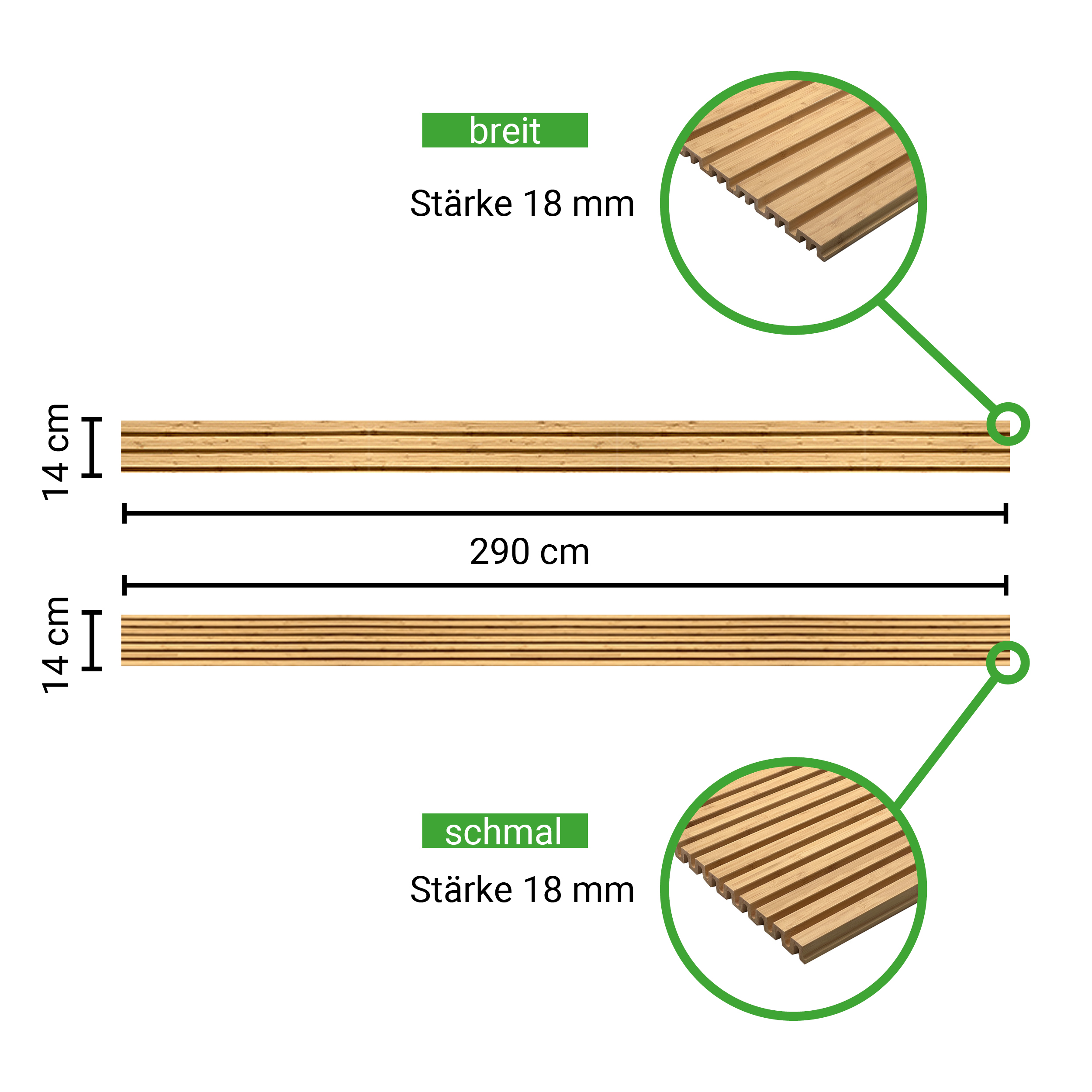 Fassadenverkleidung Bambus geölt RhombusprofilStärke/Breite 18 x 140 mm, Länge 2,9 m, glatt gehobelt