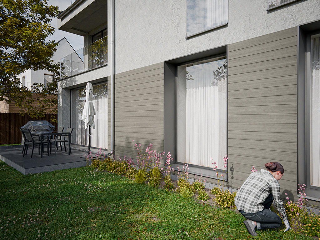 WPC (Wood Plastic Composite) ist eine Verbindung aus Holz und Kunststoff mit vielen Vorteilen. Dieser Verbundwerkstoff ist nicht nur leicht zu pflegen und reinigen, sondern auch witterungsbeständig, form- und farbstabil, splitterfrei und rutschfest – die ideale Fassadenverkleidung. Außerdem zeichnet er sich durch die hohe Dichte aus, die ihn gut vor Insektenbefall schützt.