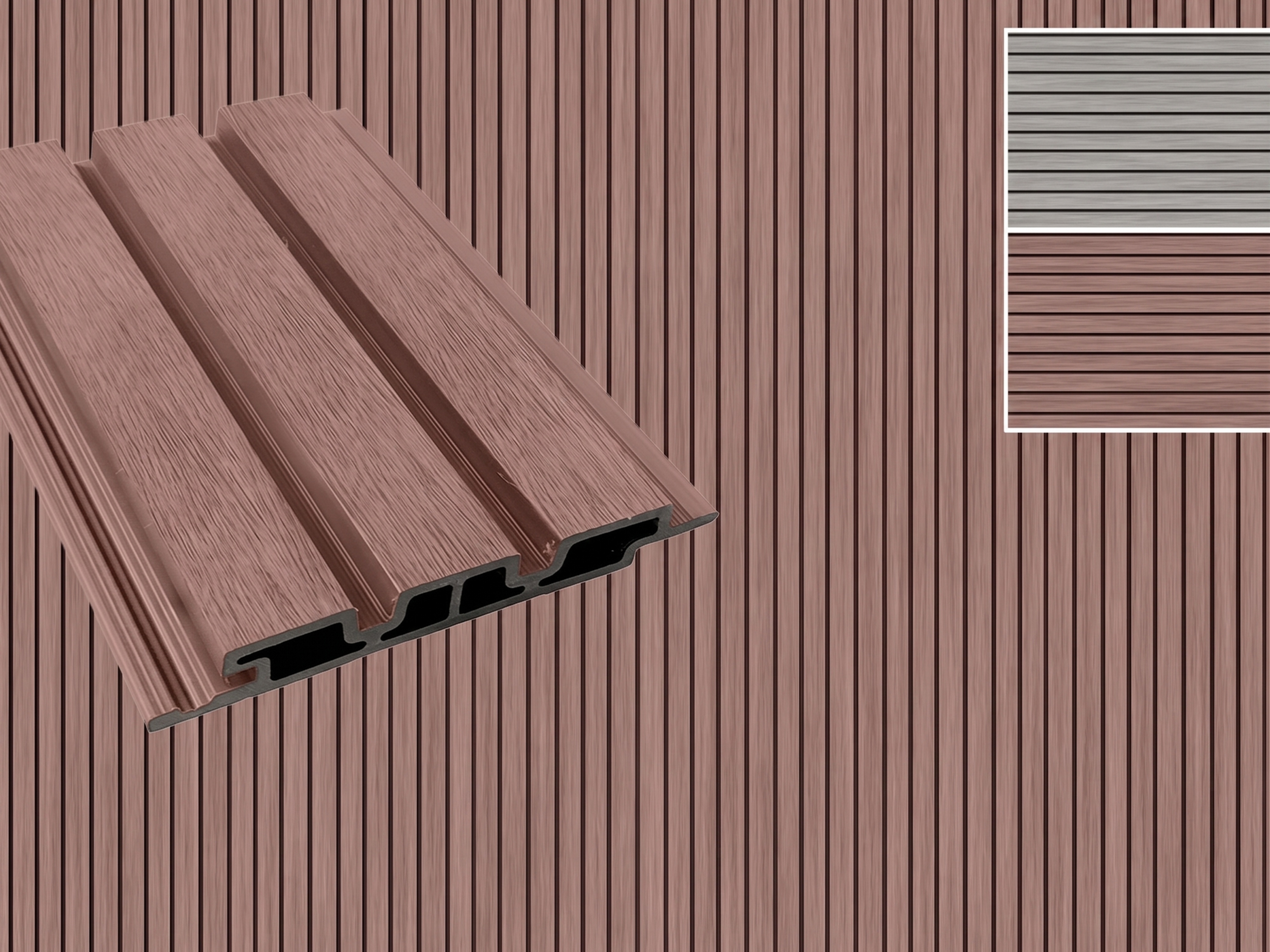 Bitte beachte, dass die Farben unserer WPC-Produkte aufgrund natürlicher Materialeigenschaften und Produktionschargen variieren können. Leichte Farbabweichungen zwischen einzelnen Elementen oder zu Mustern sind möglich und stellen keinen Qualitätsmangel dar.