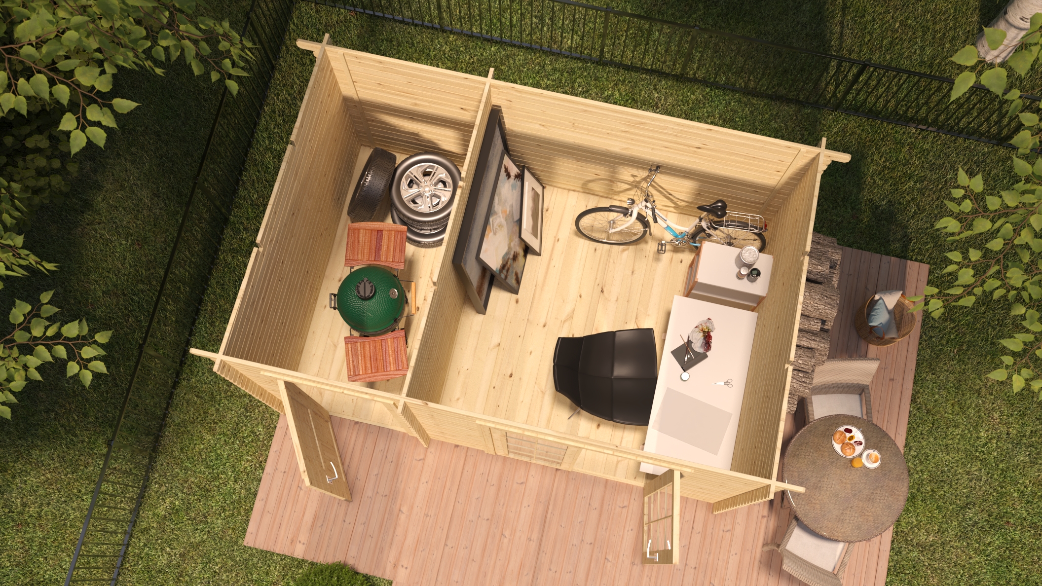 Mit einer Wandstärke von 28 mm ist das robuste Gartenhaus der perfekte Aufenthaltsort im Sommer. Aufgrund wärmedämmender Eigenschaften des hochwertigen Holzes ist es im Inneren des Gartenhauses während der prallen Sommerhitze 3–5 Grad kühler und in den kälteren Abendstunden 3–5 Grad wärmer als draußen. So hast du im heißen Sommer immer ein schattiges Plätzchen. Dank der soliden Wandstärke verwittert das Holz nicht so schnell und bleibt langlebig sowie stabil.