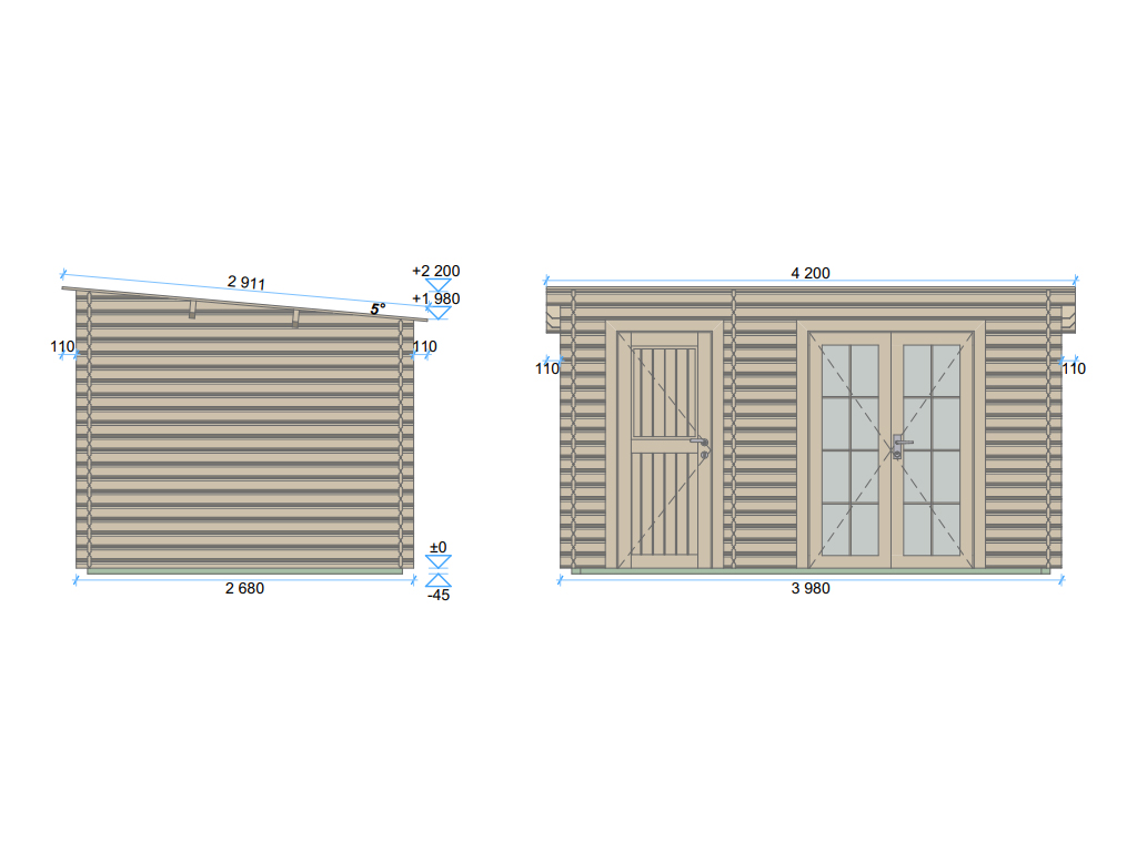 | Außenmaß inkl. Dachüberstand (B x T): | 420 x 290 cm |