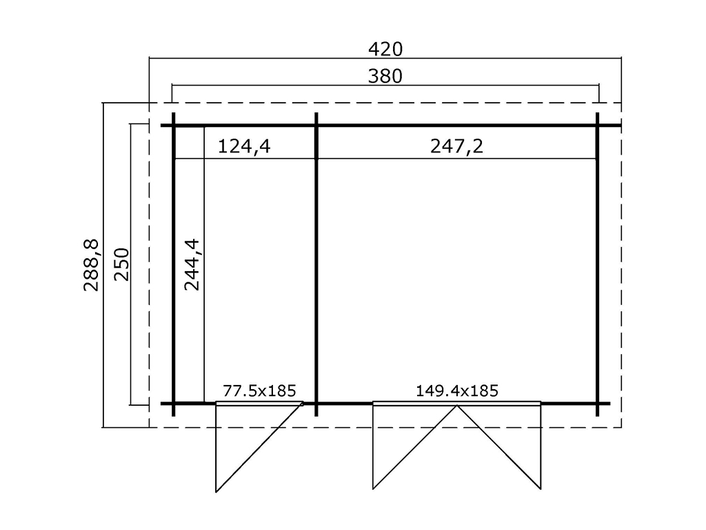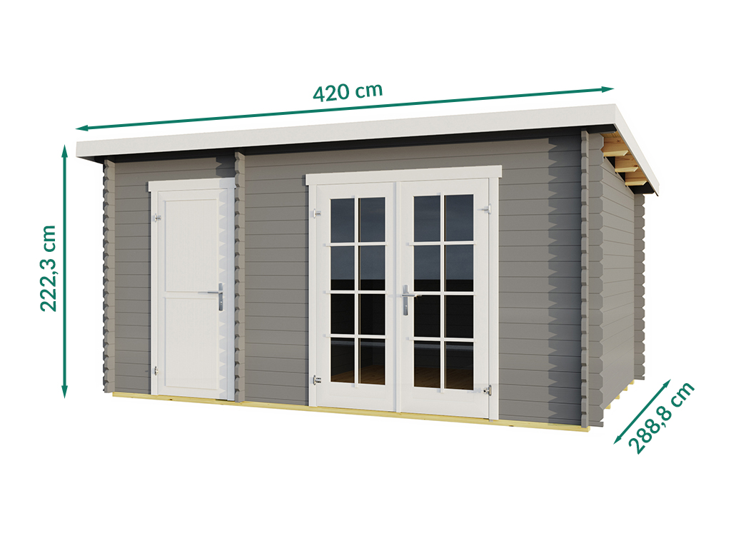 | Außenmaß inkl. Dachüberstand (B x T): | 420 x 288,8 cm |