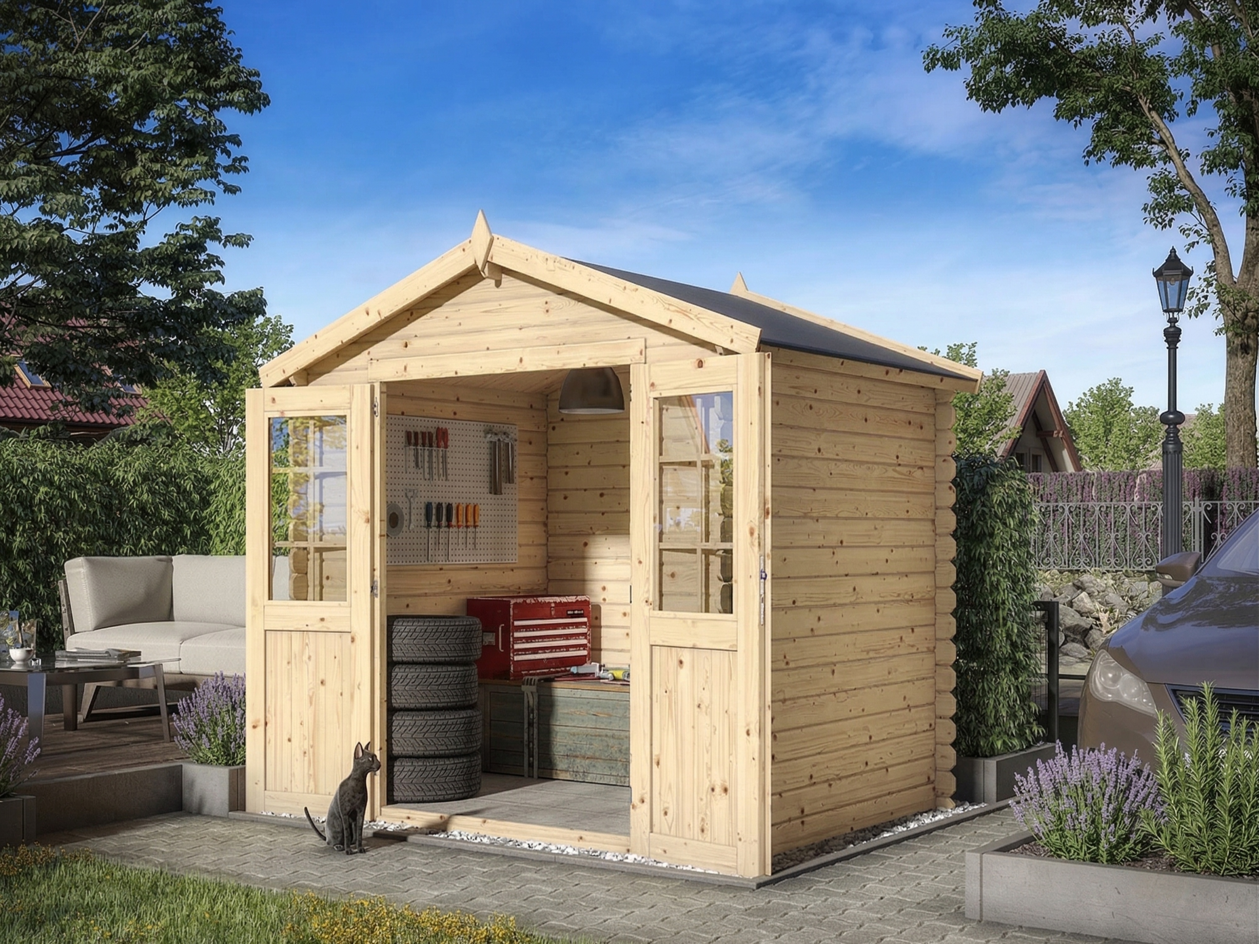 Das naturbelassene Holz sorgt für ein natürliches und zeitloses Aussehen. Außerdem ermöglicht Dir das unbehandelte Holz, das Äußere des Gartenhauses ganz nach Deinen eigenen Wünschen zu gestalten.
