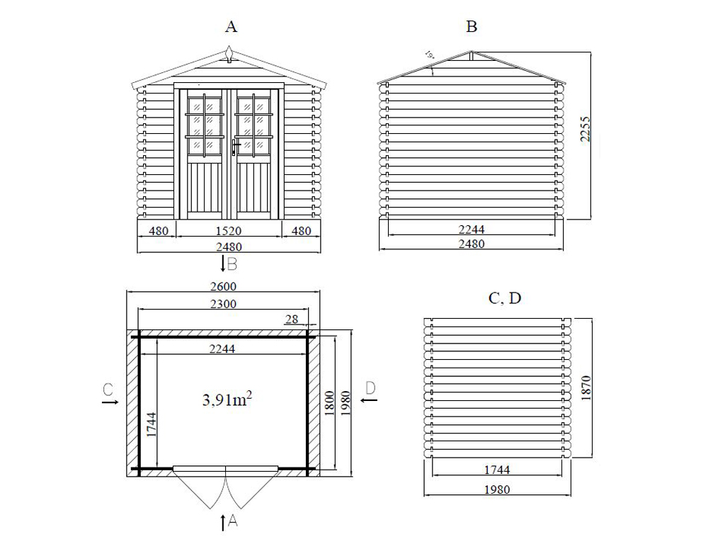 Außenmaß inkl. Dachüberstand (B x T): 260 x 198 cm