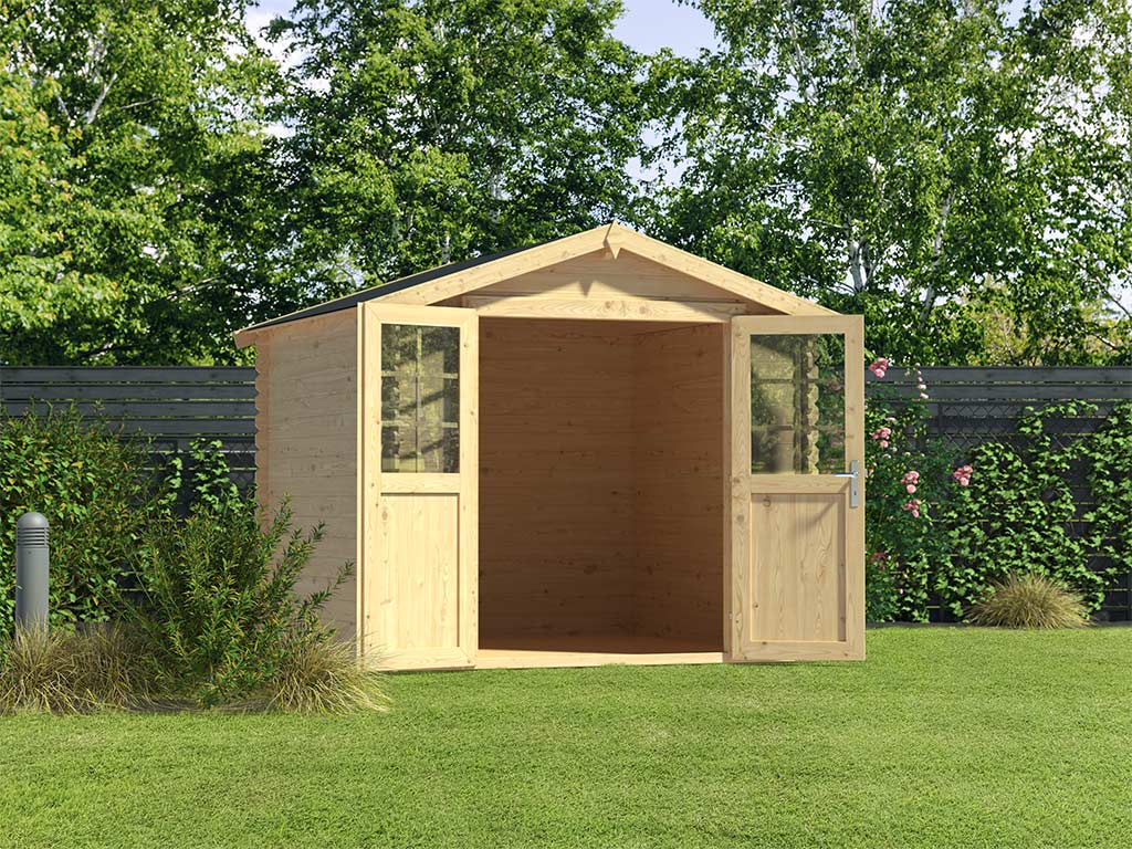 Das naturbelassene Holz sorgt für ein natürliches und zeitloses Aussehen. Außerdem ermöglicht Dir das unbehandelte Holz, das Äußere des Gartenhauses ganz nach Deinen eigenen Wünschen zu gestalten.