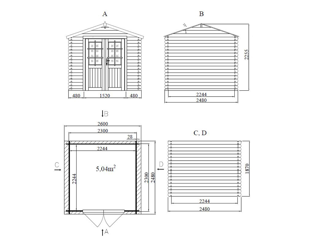 | Außenmaß inkl. Dachüberstand (B x T): | 260 x 248 cm |