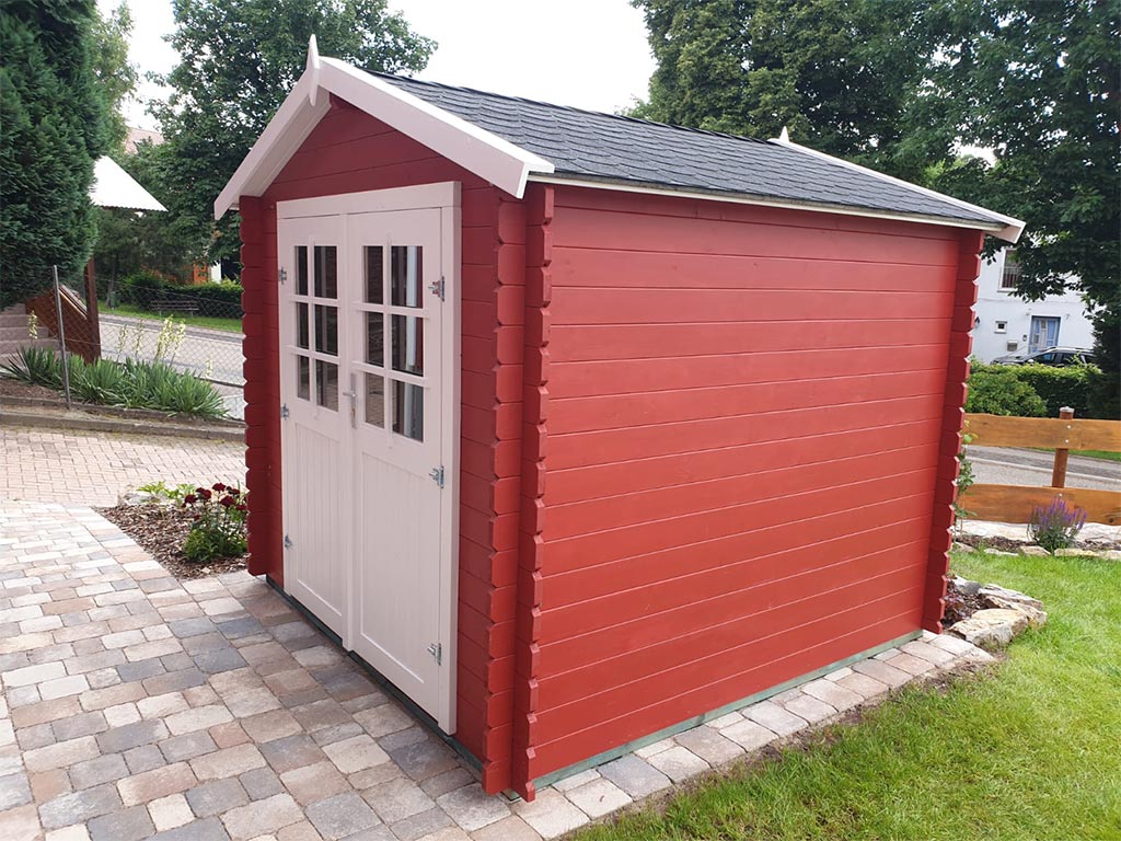 Als der Klassiker unter den Gartenhäusern verfügt ein Blockbohlenhaus über eine sehr robuste Bauweise, gepaart mit einer besonderen, natürlichen Ästhetik. Dabei orientiert sich die Bohlenbauweise an der traditionellen Blockhütte. Die Wände setzen sich aus vorgefertigten Holzbohlen zusammen, die dank einer Nut- und Feder-Verbindung ohne größere Anstrengungen aufeinander gesteckt werden können. Damit ist ein einfacher und schneller Auf- und Abbau garantiert. An der Kopfseite des Gartenhauses sorgt die charakteristische Verkämmung (spezielle Einkerbungen im Holz) nicht nur für eine schöne Optik, sondern hält das ganze Konstrukt auch zusammen und macht es absolut wind- und wetterfest.