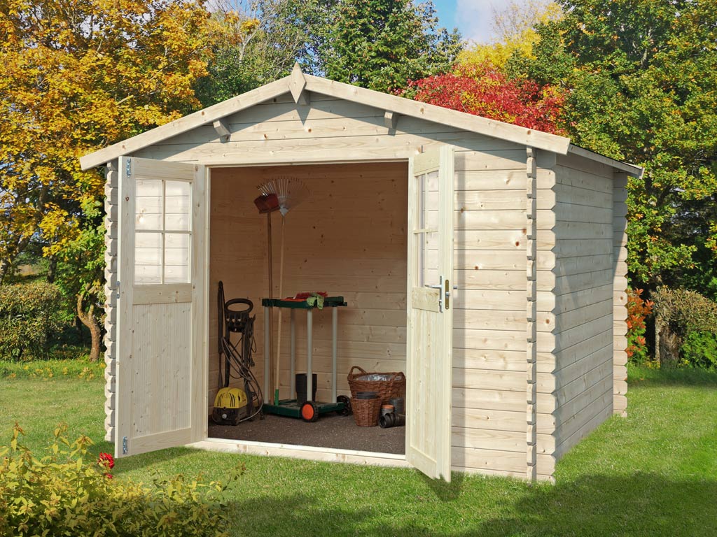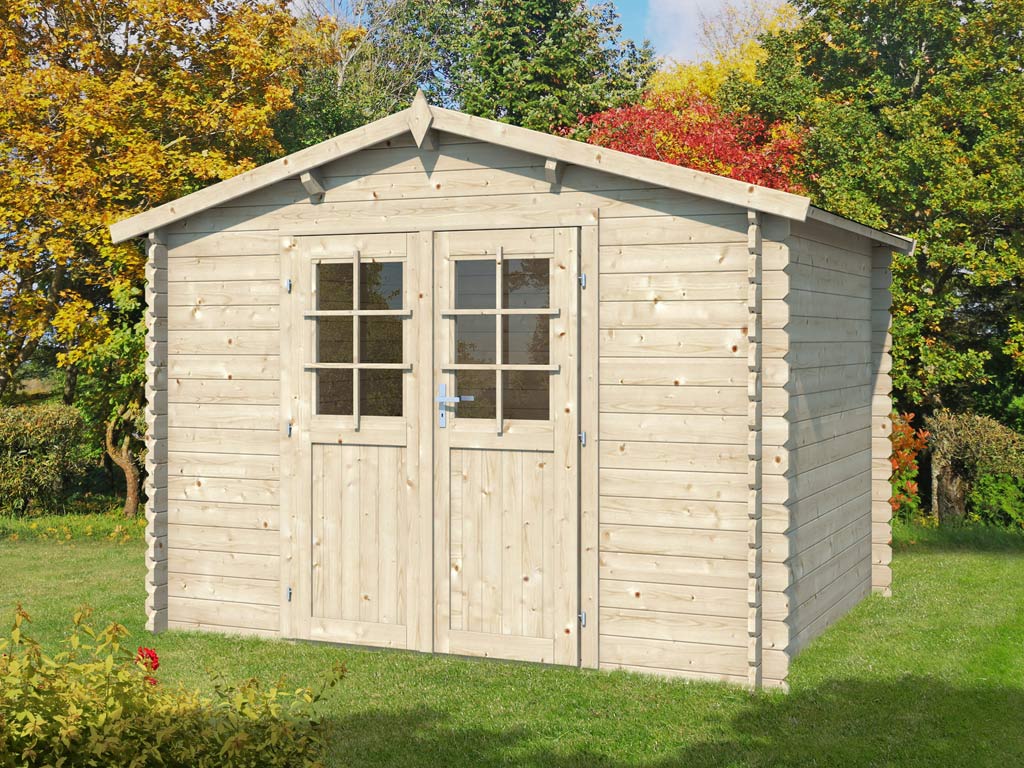 Gartenhaus Blockbohlenhaus CA2975 28 mm...B x T x H: 298 x 309 x 203 cm, Doppelflügeltür, Sockelmaß: 280 x 280 cm