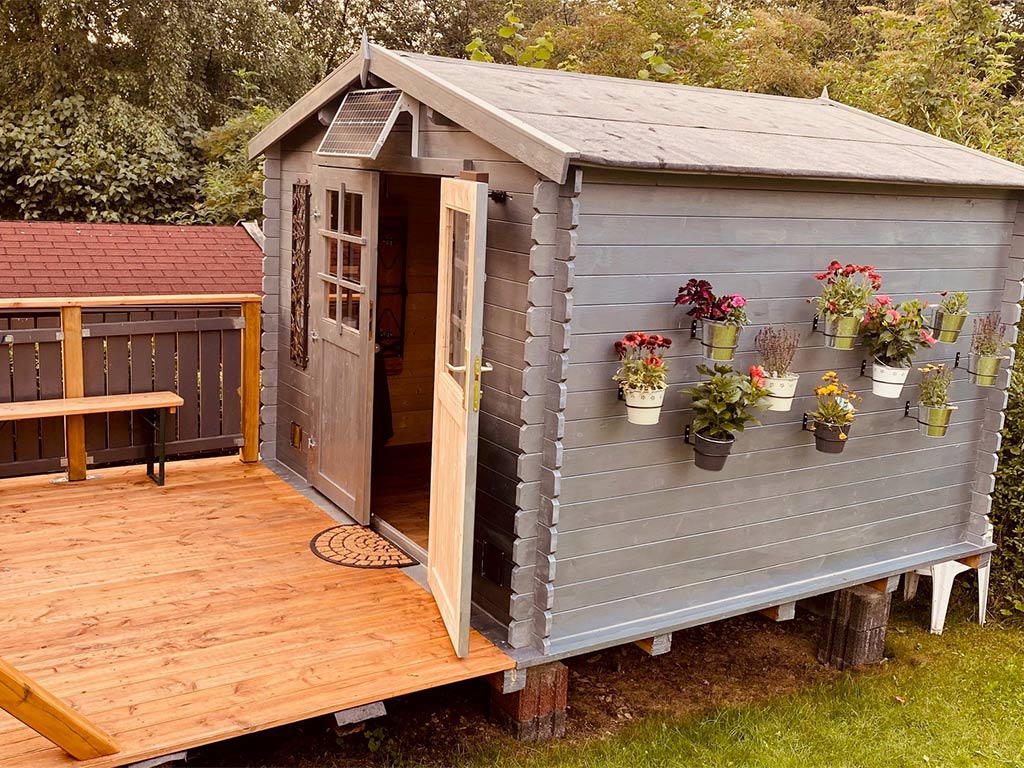 Das naturbelassene Holz sorgt für ein natürliches und zeitloses Aussehen. Außerdem ermöglicht Dir das unbehandelte Holz, das Äußere des Gartenhauses ganz nach Deinen eigenen Wünschen zu gestalten.
