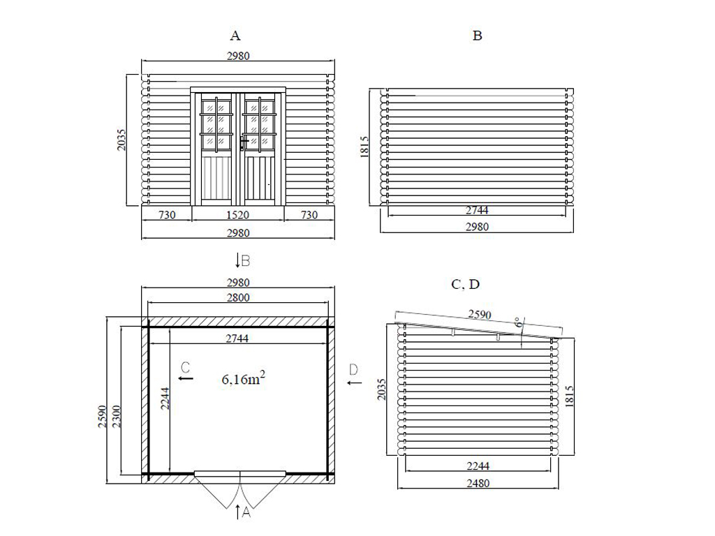 Außenmaß inkl. Dachüberstand (B x T): 298 x 259 cm