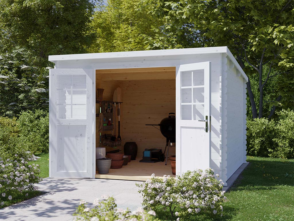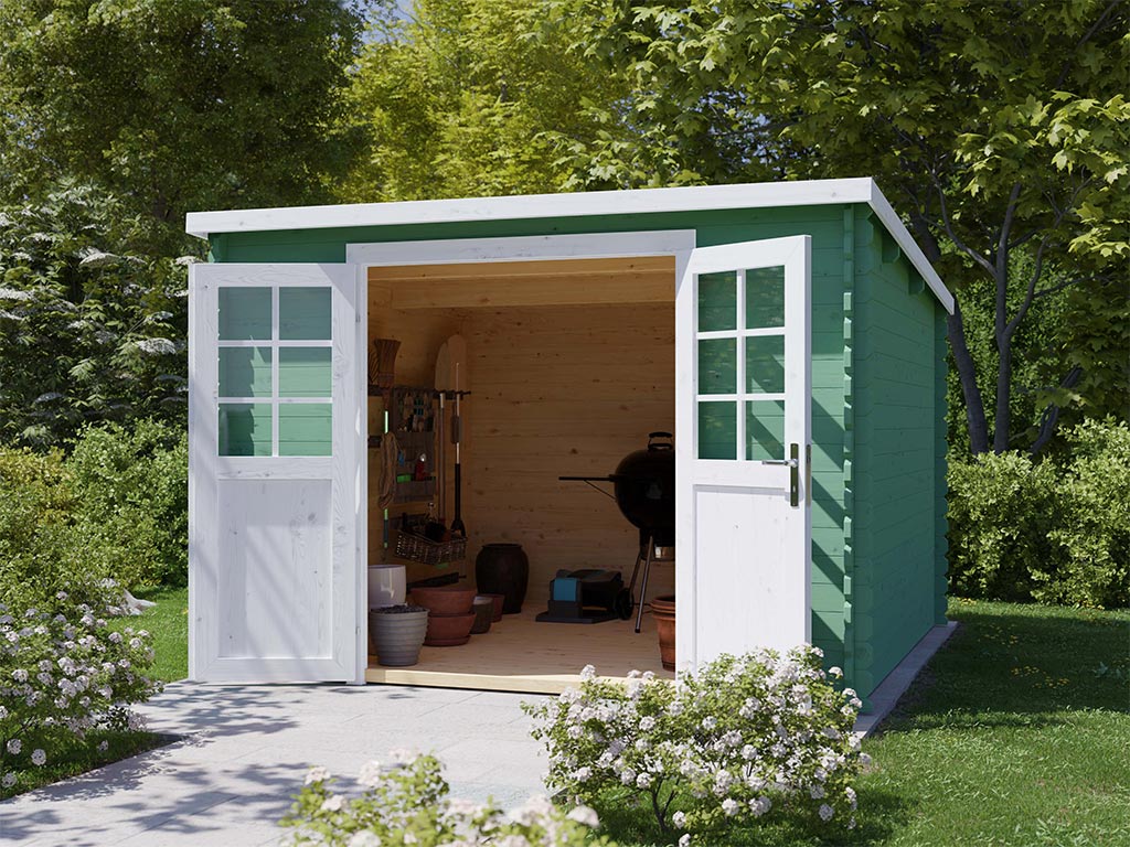 Dieses klassische Gartenhaus überzeugt mit seiner Praktikabilität. Dank seines traditionsbewussten, unaufdringlichen Designs fügt es sich in jede Umgebung perfekt ein und strahlt dabei Gemütlichkeit und Heimeligkeit aus. Ob als Unterstellplatz für Gartengeräte, Grill, Fahrrad oder als Hobbyraum - das klassische Gartenhaus bietet Raum für Deine individuellen Bedürfnisse.