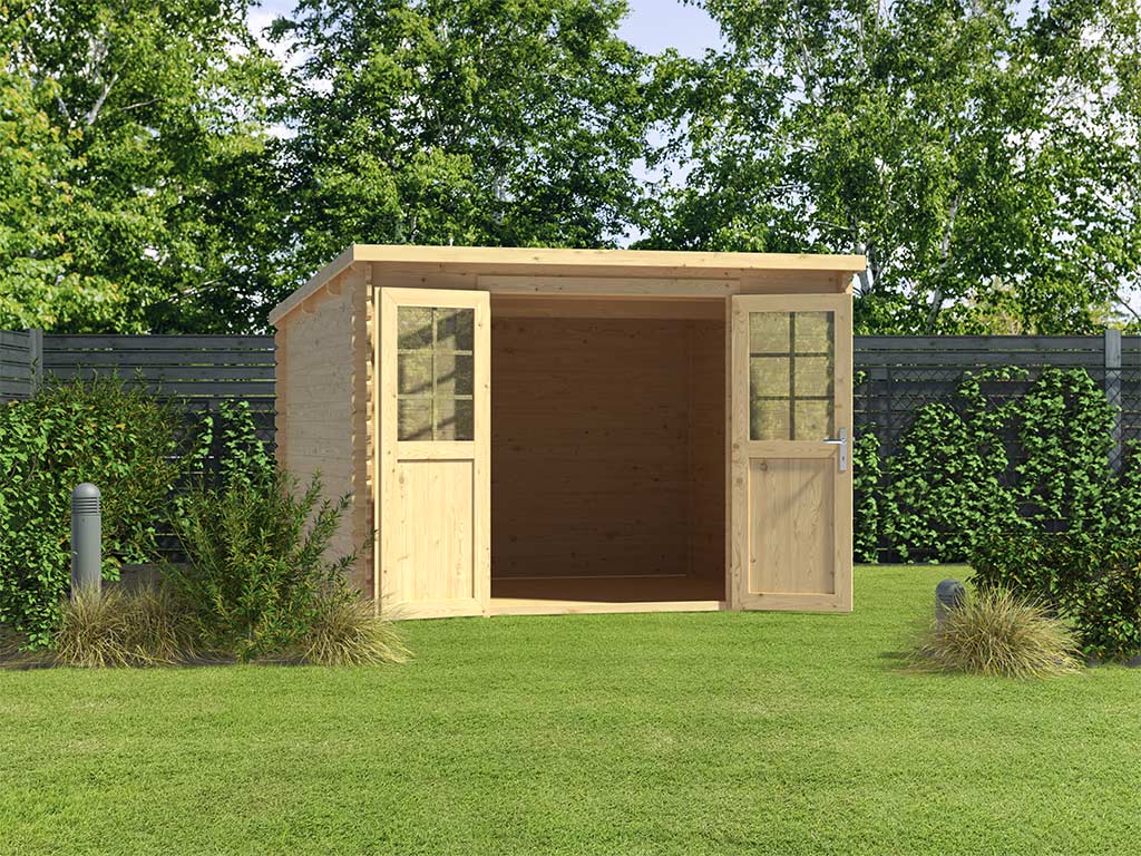 Das naturbelassene Holz sorgt für ein natürliches und zeitloses Aussehen. Außerdem ermöglicht Dir das unbehandelte Holz, das Äußere des Gartenhauses ganz nach Deinen eigenen Wünschen zu gestalten.