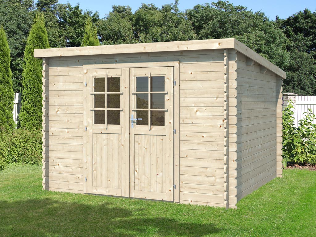 • Ein modernes Pultdach aus Massivholz mit Nut- und Federverbindung verleiht Deinem Gartenhaus eine stilvolle, elegante Optik. Durch nur eine geneigte Dachfläche ist die Nutzungsfläche im Inneren des Gartenhauses deutlich weniger eingeschränkt und der Verlust an Nutzraum gering. Zudem lässt die Neigungsseite des Pultdaches das Regenwasser gut abfließen und es ist die Montage von nur einer Regenrinne nötig.