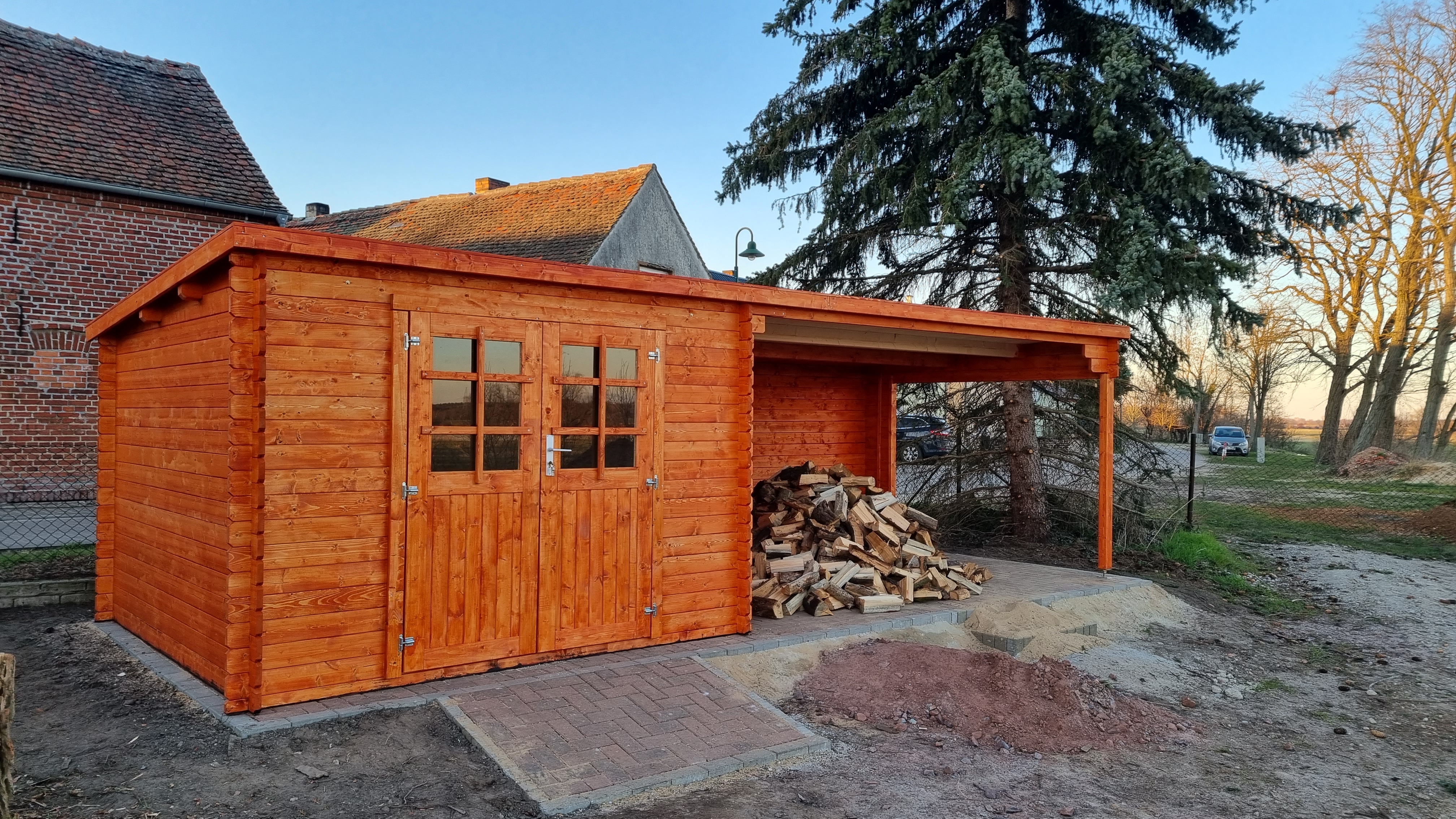 Gartenhaus Blockbohlenhaus CA2978 28 mm naturbelassen mit 4 m Anbau