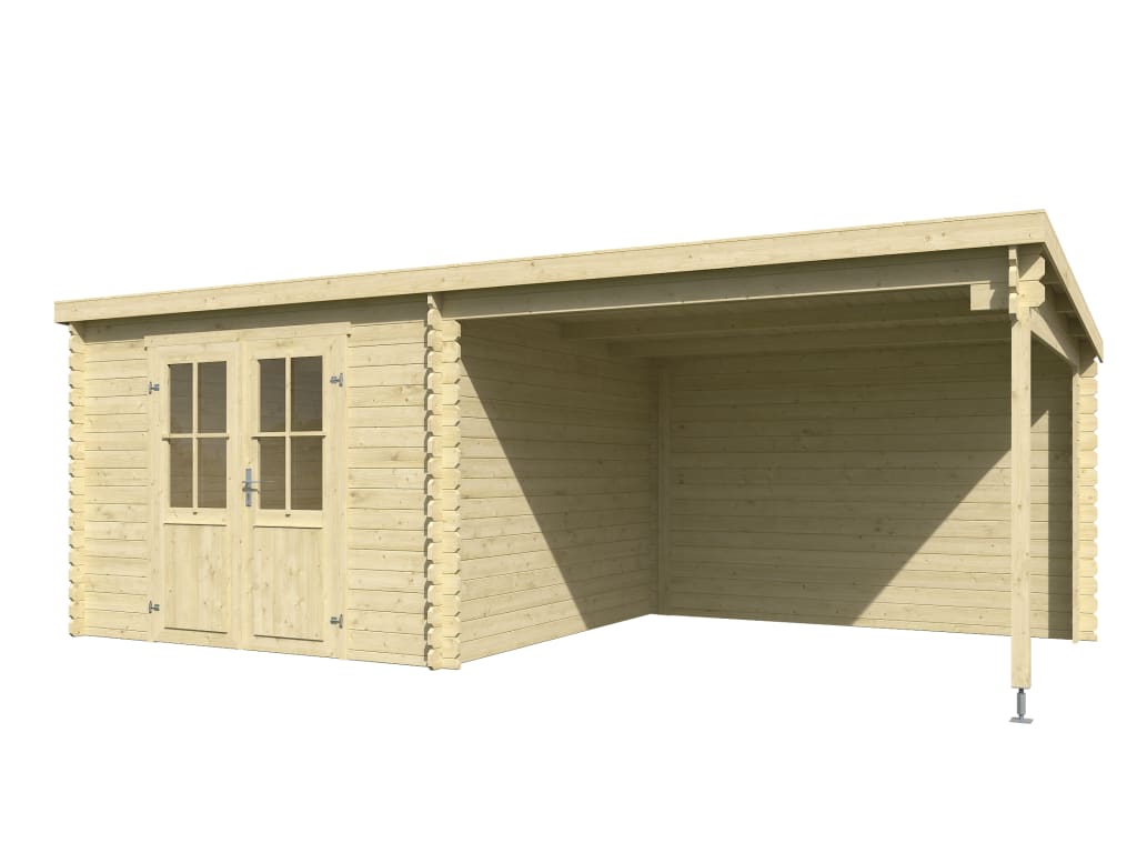 Gartenhaus Blockbohlenhaus Orlando Exklusiv 28 mm naturbelassen mit 3 m Anbau