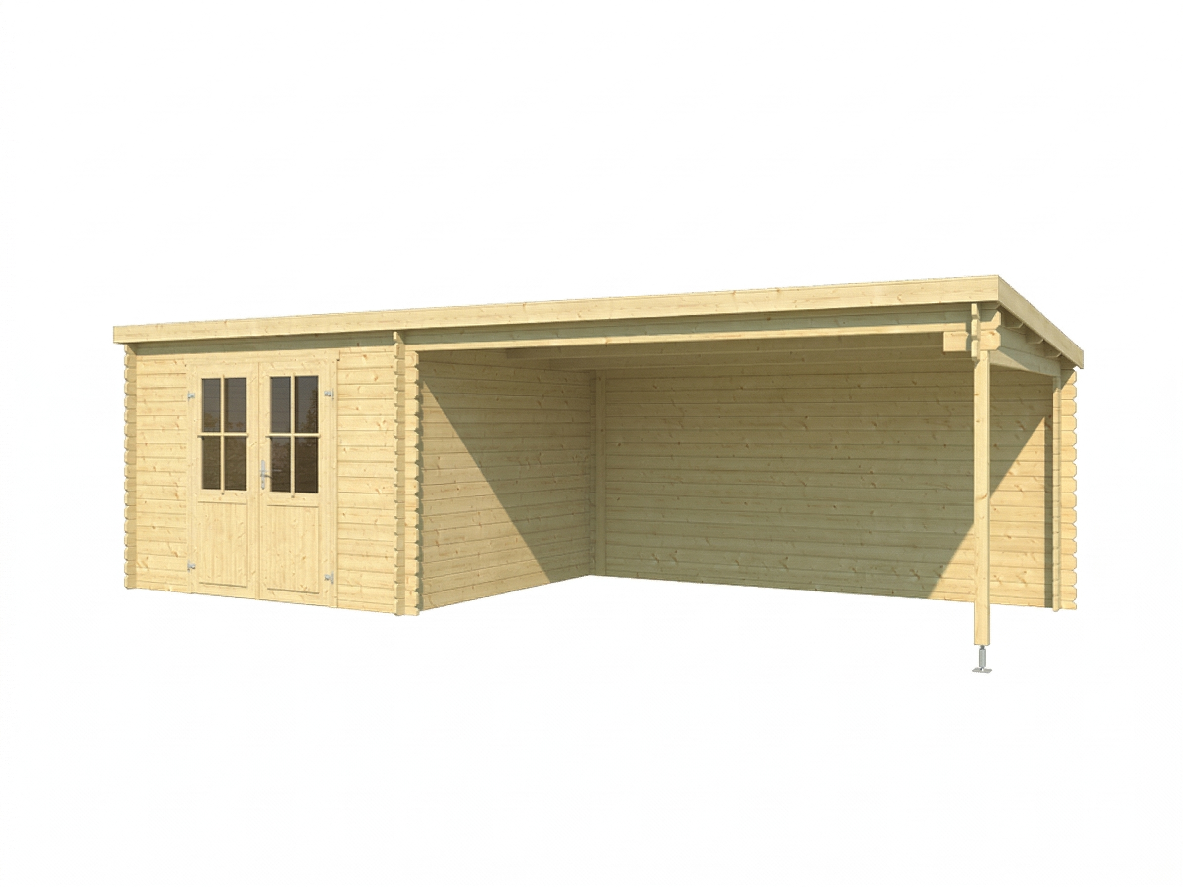 Gartenhaus Blockbohlenhaus St. Louis Exklusiv 28 mm naturbelassen mit 4 m Anbau