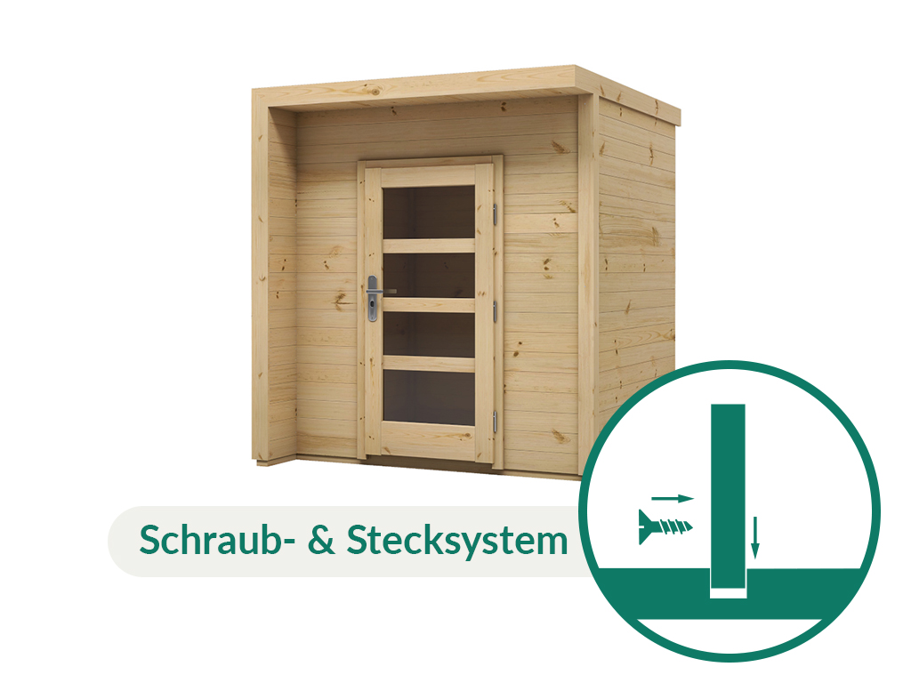 Das Gartenhaus wird ohne Fußboden geliefert. Einen passenden Fußboden (achte auf die Serienbezeichnung) findest du in unserem Zubehörsortiment.