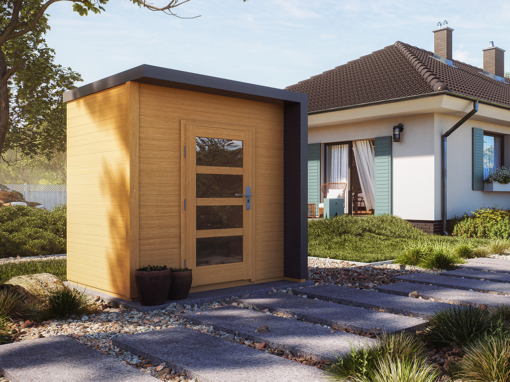 Gartenhaus Qubic-Cubino 19 mm naturbelassenB x T x H: 246 x 246 x 214 cm, Sockelmaß Haus: B x T: 242 x 242 cm