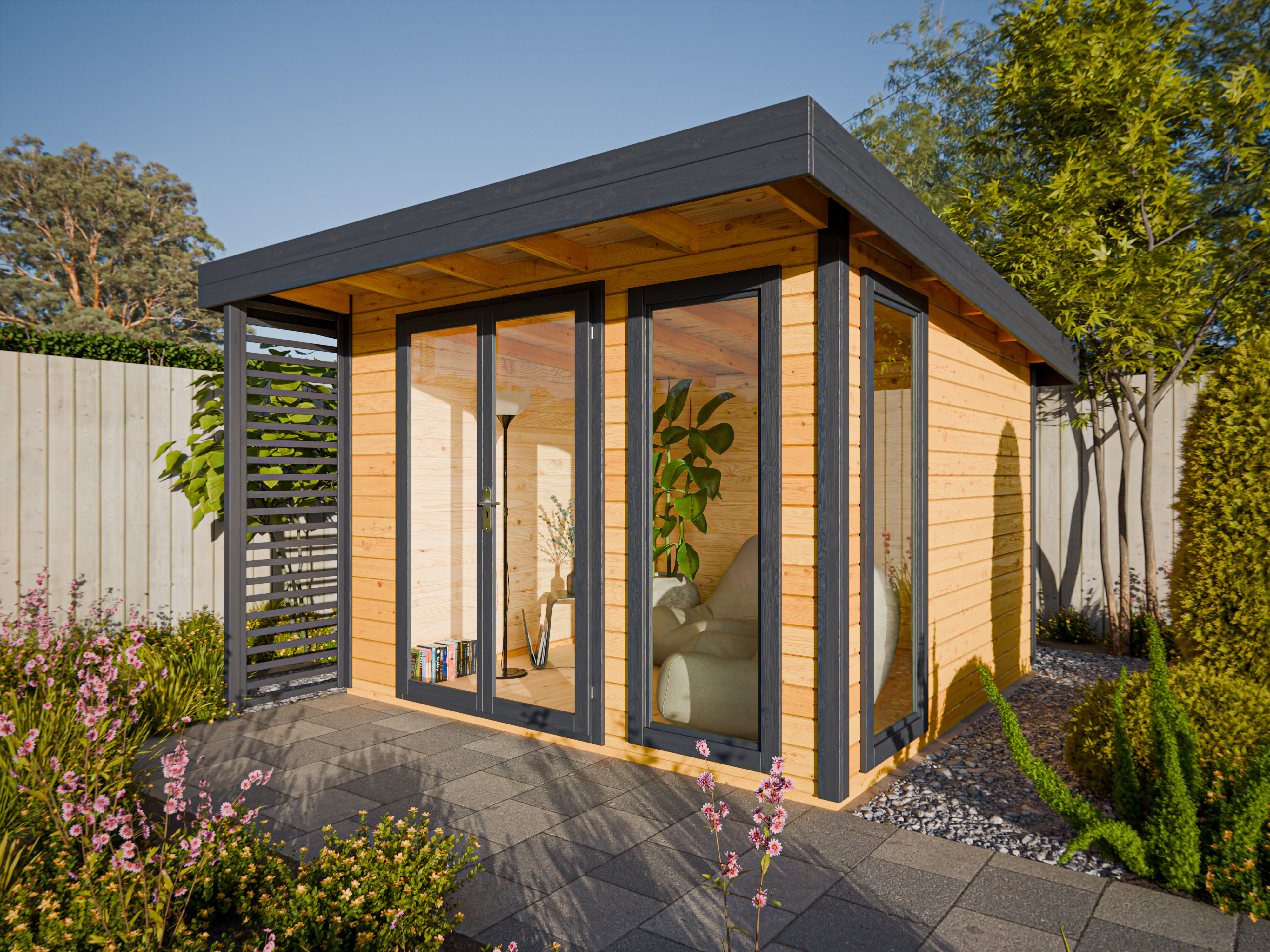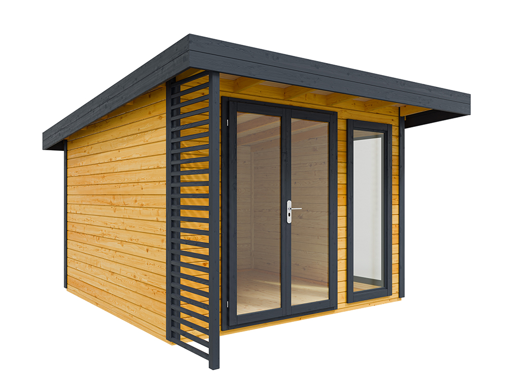 WOODTEX Gartenhaus Homeoffice Arvo 28 mm Eiche-Anthrazit