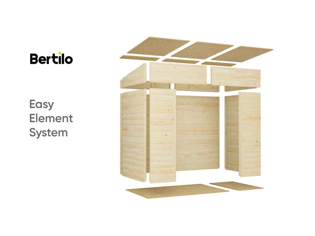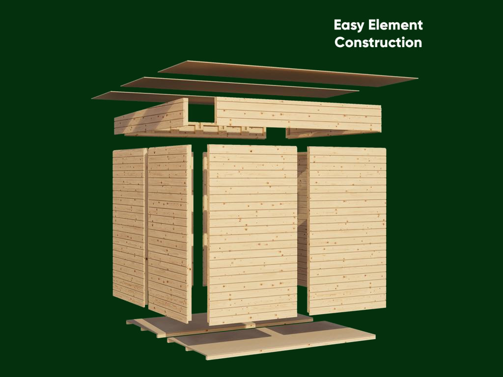 Dank der Elementbauweise ist dein Gartenhaus besonders schnell und einfach montiert. Bei dieser Bauweise bestehen die Wände nicht aus einzelnen Bohlen, sondern aus bereits vorgefertigten Wandelementen, die sich aus einem Holzrahmen und bereits miteinander befestigten Profilhölzern zusammensetzen. Diese Wandelemente werden einfach miteinander verschraubt, das vorgefertigte Dachelement aufgesetzt und schon kann man sich an diesem praktischen Gartenhaus erfreuen! Eine individuelle Gestaltung bieten zudem Türen und Fenster, die durch das Austauschen einzelner Wandelemente eingebaut werden können.