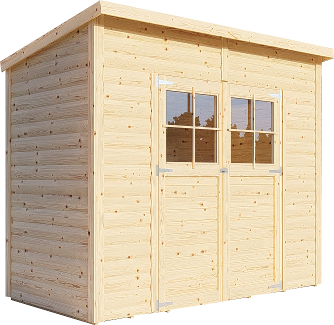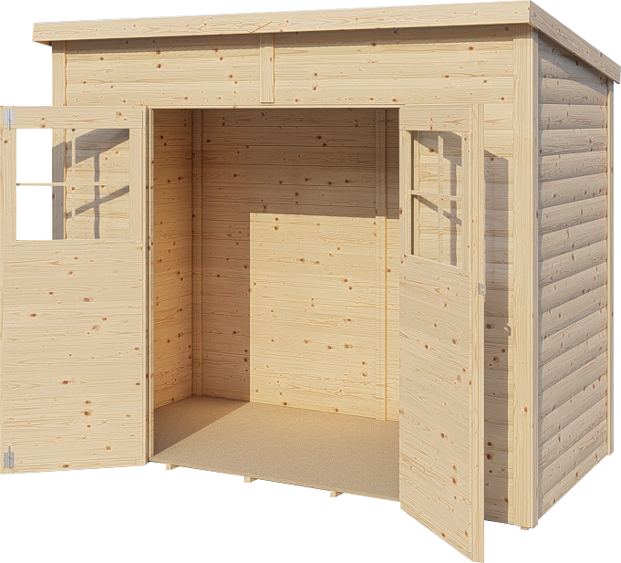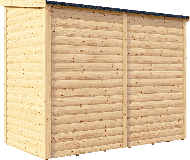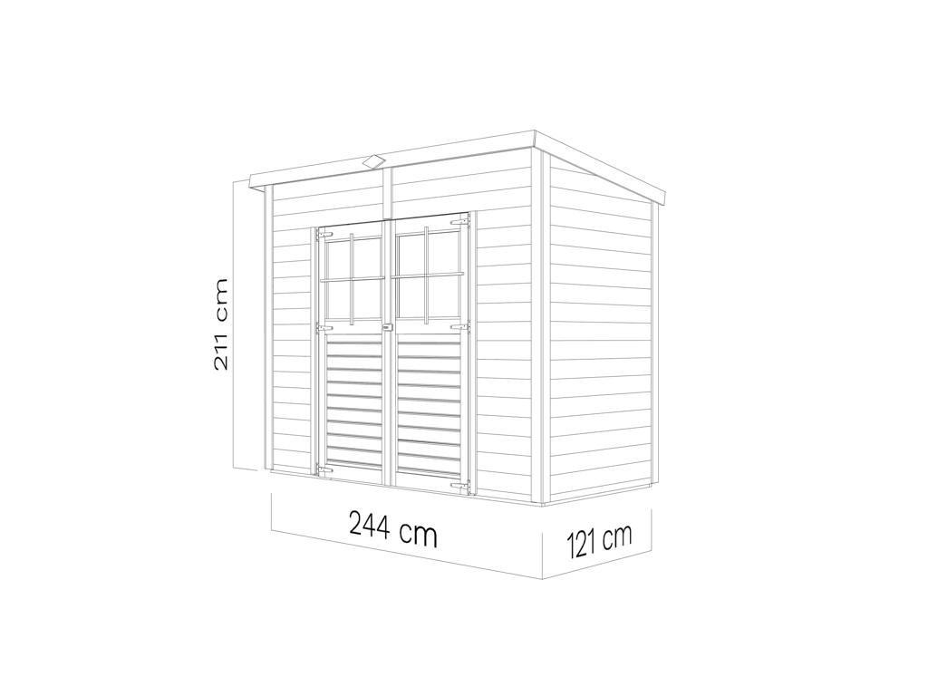 Die Grundfläche des Gartenhauses beträgt 2,96 m². Das Sockelmaß liegt bei 244 × 121 cm (B x T). Eine optimale Raumnutzung wird dank einer Firsthöhe von 210 cm gewährt.