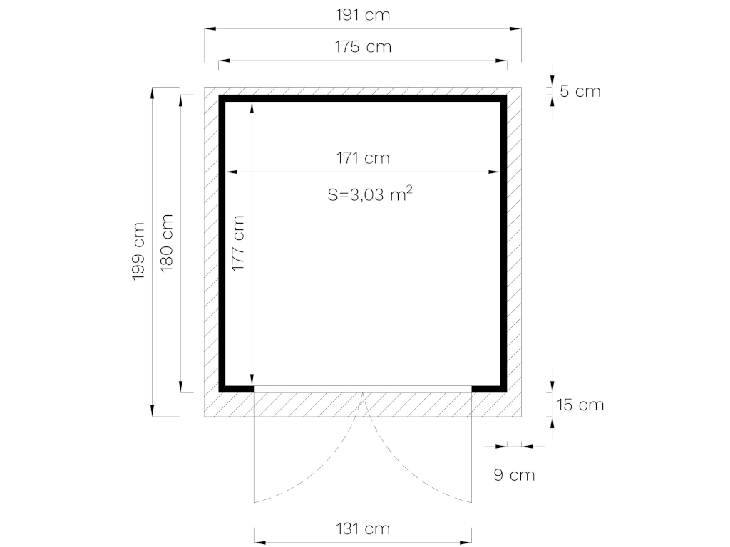 | Innenmaß Haus / größter Raum (B x T cm): | 177 x 117 cm |